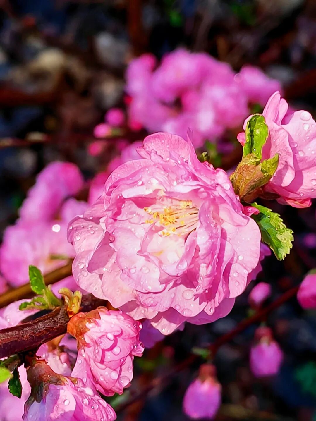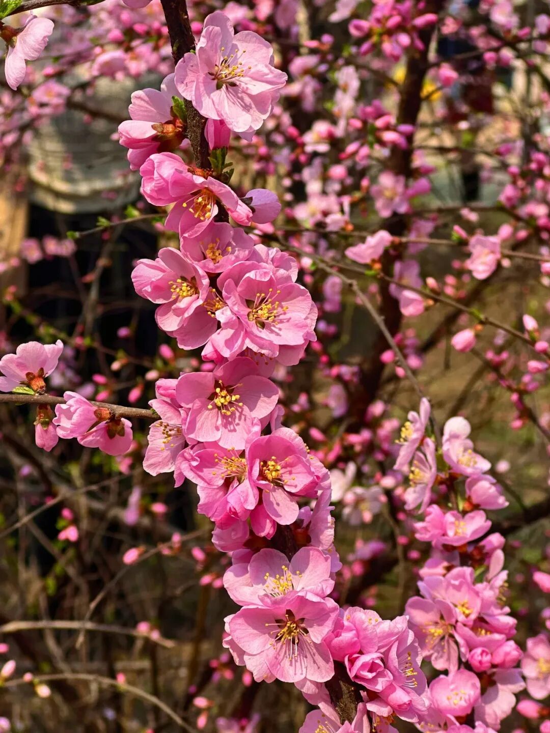 嫣红的花瓣成团成簇,烂漫缤纷