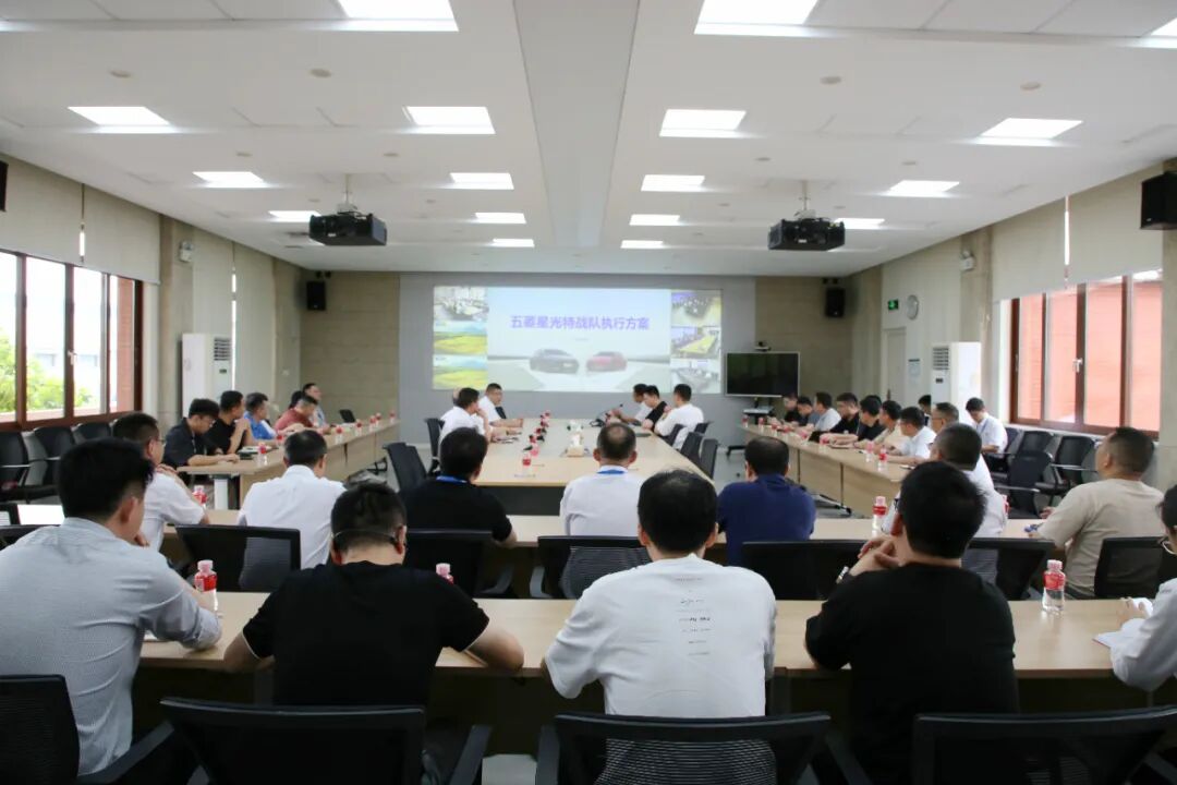 在动员会上,产品营销中心副总经理沈伟做了五菱星光特战队执行方案的汇报,通过分析公司三大基盘容量和份额的形势,在庞大的A级车市场容量中,五菱星光的渗透率存在巨大的提升空间。为此,公司集全体系之力组建五菱星光特战队,通过“四个原则”,凝聚“三支队伍”;以“二个打法”的精准出击,助力实现五菱星光销量的“一个目标”,凝心聚力打赢五菱星光这场荣耀之战!随着五菱星光特战队的成立,通过公司领导亲自带队指导,产品营销中心全面拉动,集成产品、市场、渠道资源优势,组织开展培训师资源队伍建设,将制造部、质量部、四大生产基地、采购中心、赛克科技的人才资源聚在一起,开展单店提升、体验式营销、线上&线下获客的集训提升,快速形成跨部门协同作战和复盘机制,通过以结果为导向的正向激励,团结带领全体系在五菱星光的战役中上下同欲,使命必达!