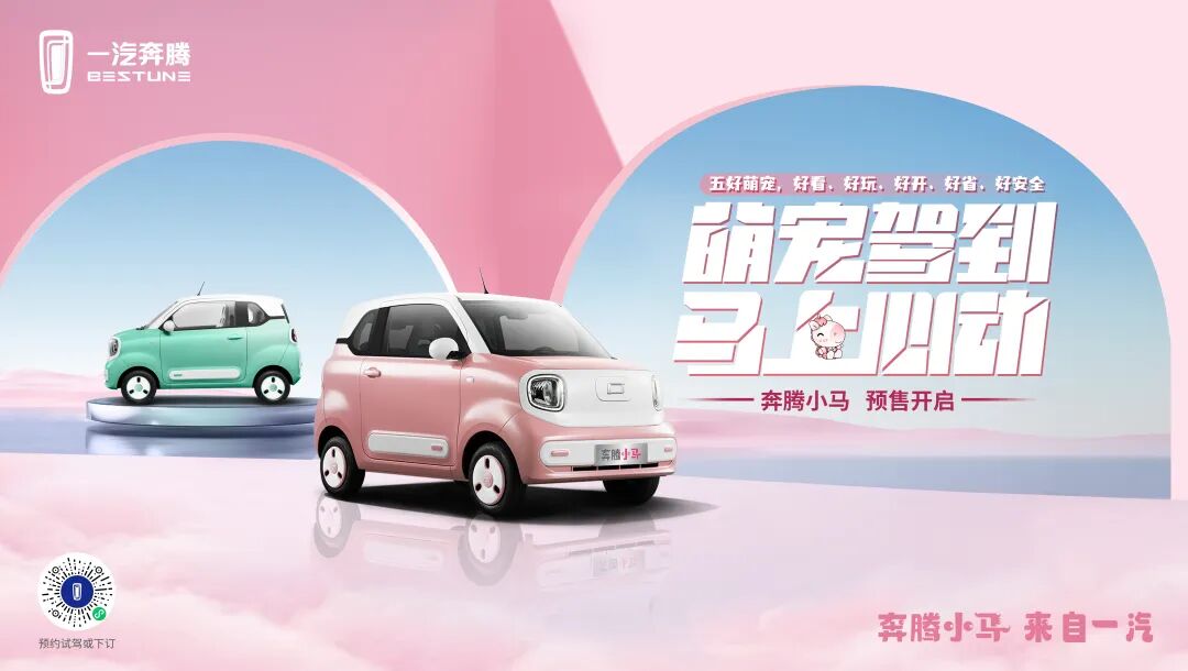 萌宠驾到,马上心动。4月30日,中国一汽首款微型纯电产品——奔腾小马,将通过一汽奔腾官方直播间正式开启预售。好看、好玩、好开、好省、好安全,五好萌宠出街,为用户出行带来潮趣满格新体验。