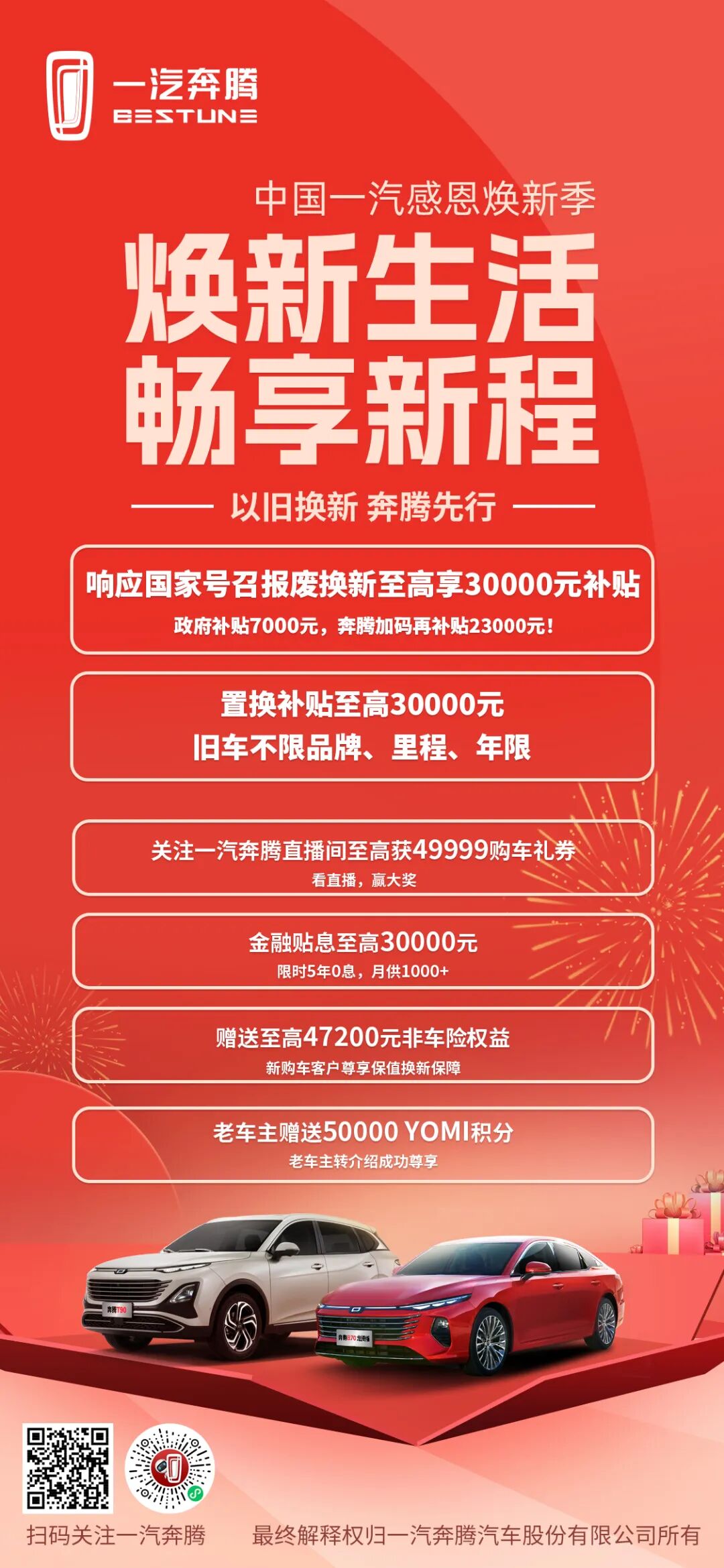 摘要:旧车换新车,奔腾再加码!报废车含政府补贴至高享三万优惠!