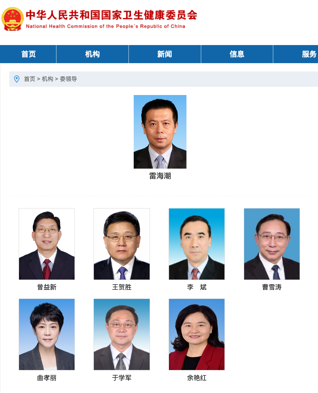 雷海潮已任国家卫健委党组书记