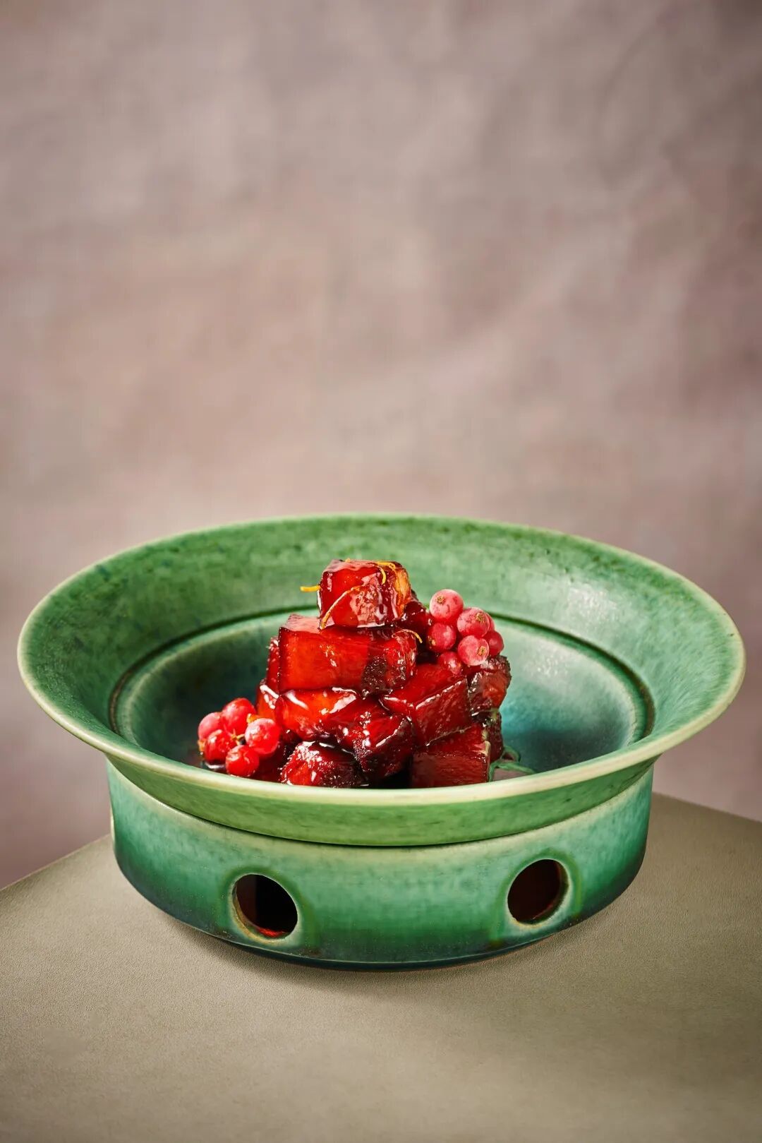 这道菜在选材上严选了乌金猪的正五花肉,慢着火少着水,文火慢炖出猪肉浓郁的香气,再搭配手指柠檬清新解腻。