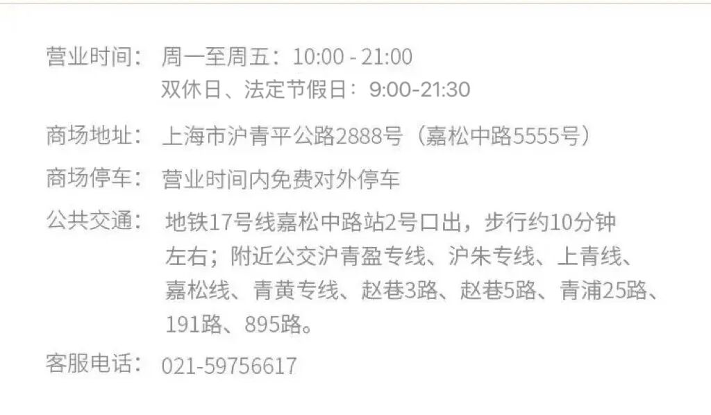 文章内容来源于公众号:百联青浦奥莱,点此可查看原文,内容版权归相关企业所有,本网站仅供交流学习。若涉及版权问题或存在侵权情况,请及时与我们联系,我们将第一时间进行删除处理。