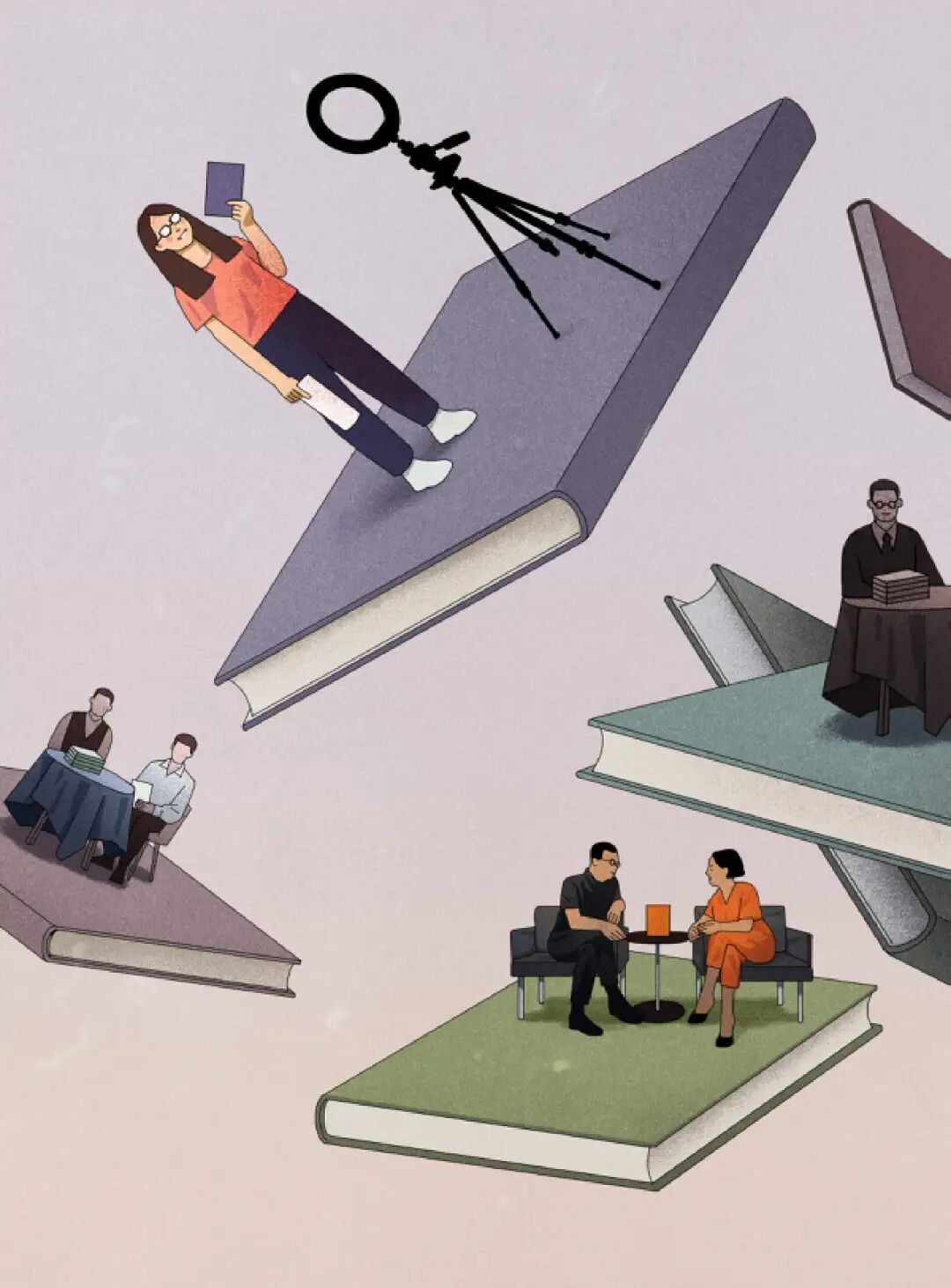 一个工作日,王晴被20几个营销工作群消息轰炸,十二点之前,她对完3个活动方案,推动几篇发稿,还抽出几分钟找了一个博主聊了聊新书,她觉得自己像一位“客服”。王晴的社交平台已经刷成图书博主赛道,一点开app,算法会自动推荐更多相关博主,信息茧房成为了她的工具箱。我们在周日的下午见面,她难得的休假日。王晴已经连续加班了好几周,第一季度她有三本新书,七八个线下活动。营销人力不足,我们采访的几家出版社与图书公司都是如此。陈路对接的营销编辑,同时需要对接三到四位策划编辑,手里经常有十几本新书、老书需要同时营销。四个编辑配一个营销编辑在业内已经是很高的配置,银芳入职时,公司只有她一个营销编辑。下午五点过,我们去陈路的编辑室,营销编辑就坐在他隔壁,我们迅速打了个招呼,加了联系方式。她的眼睛没有离开过手机屏幕,双手飞快打字、语音,对接周末的活动,说话语速飞快。出版社的下班时间过了,但大部分编辑还在。“我都觉得她(营销编辑)自我pua已经到极致了,太累了,真的不能再去要求她什么了。”陈路说,尽管如此,除了重点书,多数书营销完全顾不上,资料包一键群发,只能“自生自灭”。于是,陈路干脆自己营销。他在豆瓣有一万粉丝,点开他的豆瓣主页,三条不离书,赠书、约书评和写书评,他的社交生活已经与工作密不可分。去年,小红书找来合作,领导希望每位编辑都开一个小红书账号,吆喝新书。他顺势开了号,经营卖力,一周发两到三条笔记。但流量是门玄学。陈路的小红书笔记点赞数很少超过20,为数不多的高赞帖中,一条是关于她编辑的一本社科书,考虑到小红书女性受众较多,陈路特意把“大女主”放进了标题,截止目前有了六百多点赞与收藏,拉动销量几何,未知。陈路的心情因此起伏,他感觉“太被动了”。他去观察了众多读书博主,大多保持日更,内容像AI写出来的,但条条点赞很高,还有笔记一看就是没有完全看完书,粘贴几句,事实性错误都有,“看书能有这么快吗?”“需要像AI一样输出吗?”勉强更了大半年,陈路也没了热情,随缘更新,“跟我的精力投入产出比不划算了。”朱艺星前年出了一本自己很喜欢的书,《瓜亚基印第安人编年史》。这本书选题小众,并不符合市场端的要求,但足够迷人,是一本人类学民族志,讲述一群生活在巴拉圭密林中的印第安人的故事。作者皮埃尔·克拉斯特在国内名气不响,但在人类学界非常有名望,是著名人类学家克劳德·列维-施特劳斯的学生。朱艺星写了一篇长文讲述了做这本书背后的故事,发在了豆瓣上,这是她最快找到“和她一样”的人的地方。她2005年就注册了豆瓣,称得上这里的原住民,现在被8000多人关注。朱艺星成为推荐网络的中心,往外辐射。这本书现在卖了一万册,已经远超朱艺星的预期,连法国出版社都没有预料到,高兴极了。但换个地方就不奏效了。在小红书,朱艺星也发了关于这本书的文章,标题是“献给瓜亚基人的纪念碑”,点赞寥寥,她百思不得其解。聊天时,她突然搜了一条爆款帖子,点赞上千,标题是“这是我看过最悲伤的故事之一”,配图甚至只有一张电子书截图,读到最后才知道写的也是这本书。“你看看,我不够有情绪。”朱艺星自我调侃,我们哈哈大笑。光写推文还不够,这两年,朱艺星所在的出版社发力直播带货。社里试图找过一些成熟的主播,但佣金高得吓人,超过了译者。朱艺星忍不住问,“到底是谁在做书?”最后只好赶鸭子上架,编辑们自己上阵直播,还找了另一家公司的直播团队来指导。正式直播那天,从晚上7点多到凌晨,他们不停地重复说话,推销书,反复推荐卖得好的那几本。朱艺星在家里看,一开始同事还精神抖擞,对着屏幕微笑,后来情绪完全跟不上,整个脸都垮掉了。最后数据也没有很好。“深受打击。”毫无疑问,这场直播给了所有编辑深深的刺激。在手机前,陈路围观了董宇辉与古尔纳的整场直播,最终看到销售数据出来,“所有人都很开心。”他知道这样的神话难以复制,他欣然在于,这些相对冷门的书也有了触达更多读者的可能。陈路去年出了13本书,非常高产。尽管有自己的做书计划与坚持,但直面市场销量与流量,他难免焦虑。见到陈路前,我读了他的一些长文,编辑的职业认同感扑面而来。他抱着一种难得的理想主义,关心出版业的当下,并且勇敢发声。陈路很珍惜来之不易的做书机会,经常抱着书稿回家,“因为憋了很多的能量,所以拼命地做(书)”。他享受埋头做书的过程,找到一本喜欢的书,一个合适的作者,足以让他兴奋不已,就像谈恋爱心动的感觉。这几年陈路也有了一些改变,他刻意区分上班与下班,尽量不带书稿回家,而是投入生活。他没有做过直播,唯有一次为了书必须出镜,他咬咬牙还是去了,戴上了口罩。对书的细节把握不准时,他试着接纳更市场的建议,提几个书名与封面给营销与发行,也会在豆瓣问问网友的意见。“没办法,现在先要活下去,后面才能想这些。”朱艺星很平静。她自称以退休心态在做书。那天,朱艺星领着我们去了办公室的书墙,选一本书作为伴手礼——我们见到的每一位编辑都是如此热情。一整面书墙,如同一部出版社的编年史。其他策划编辑常用一种比喻形容编辑与书籍之间的特殊连结,要么是书的亲妈,要么是书的干妈。朱艺星从不,书就是她的工作成果。她用“服务业”来概括自己的工