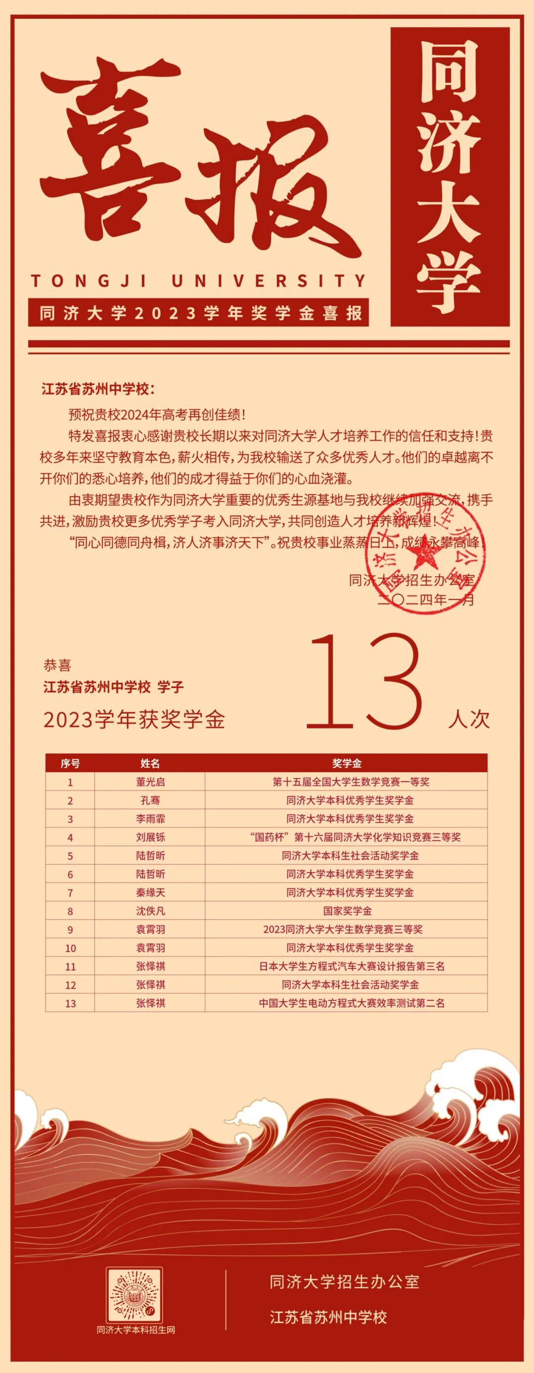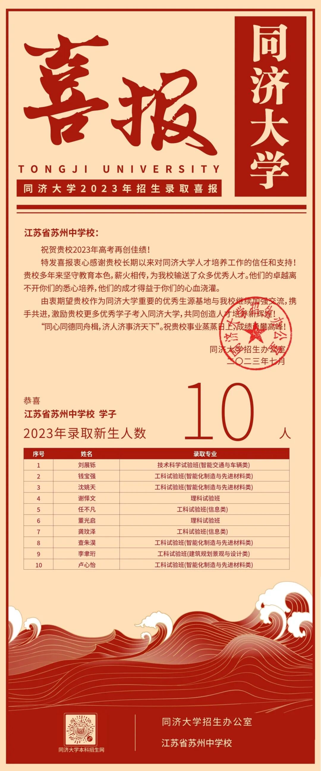 苏州中学共有10名学子