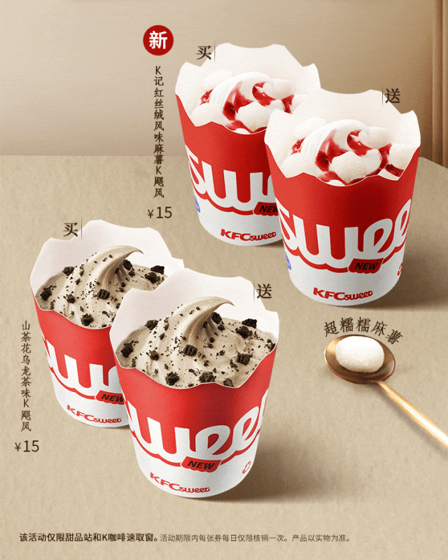 活动渠道:堂食-柜台点餐/堂食-自助点餐机/堂食-自助点餐到店自取。活动时间:9:30-23:00。活动地区:全国。堂食具体供应时间以餐厅实际营业时间为准,仅限有此产品供应的部分肯德基餐厅,交通枢纽、旅游景区、西藏自治区的餐厅及精选餐厅等部分餐厅除外,具体情况以餐厅餐牌公示为准。除推广产品外,其他物品仅做装饰目的,图示内容仅供参考。产品、周边、玩具及包装以实物为准。不与其他优惠共享。堂食、肯德基宅急送自有渠道、第三方外卖平台外送渠道、甜品站、团购渠道、企业送渠道及其他渠道的产品组合、价格及优惠活动,以各渠道页面展示为准。