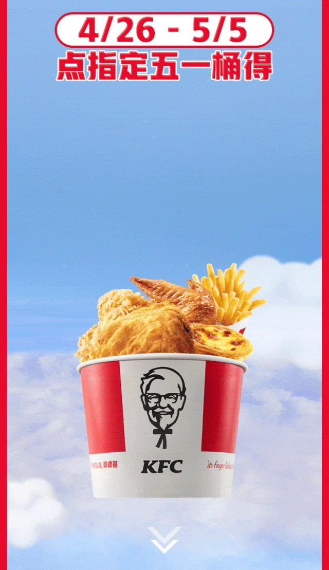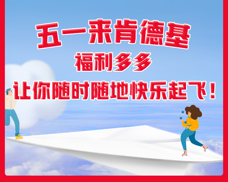 活动时间:2024年4月26日-2024年5月5日(9:30a.m.-23:00p.m.),具体以活动日参与本活动的各肯德基餐厅实际运营时间为准。