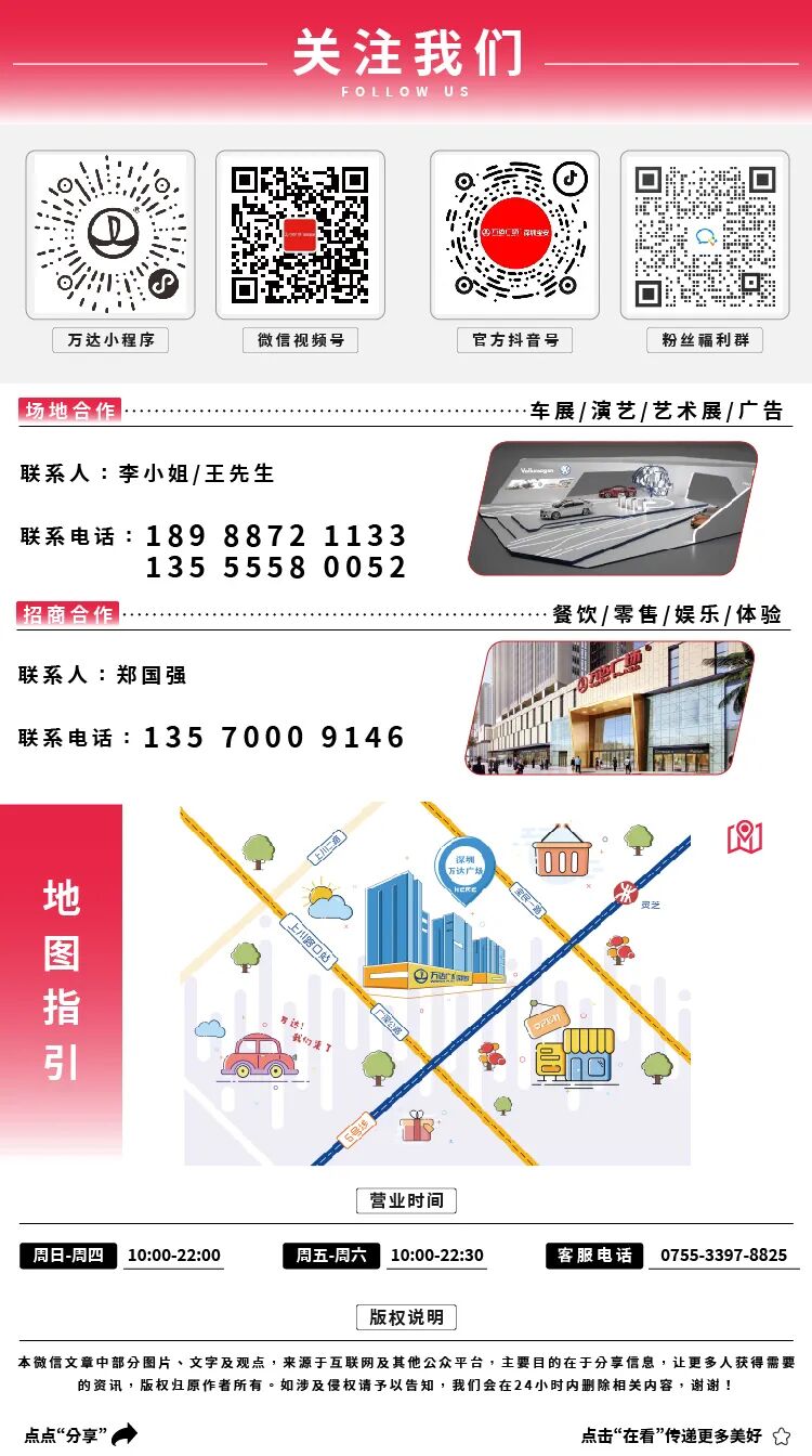 文章内容来源于公众号:深圳宝安万达广场,点此可查看原文,内容版权归相关企业所有,本网站仅供交流学习。若涉及版权问题或存在侵权情况,请及时与我们联系,我们将第一时间进行删除处理。