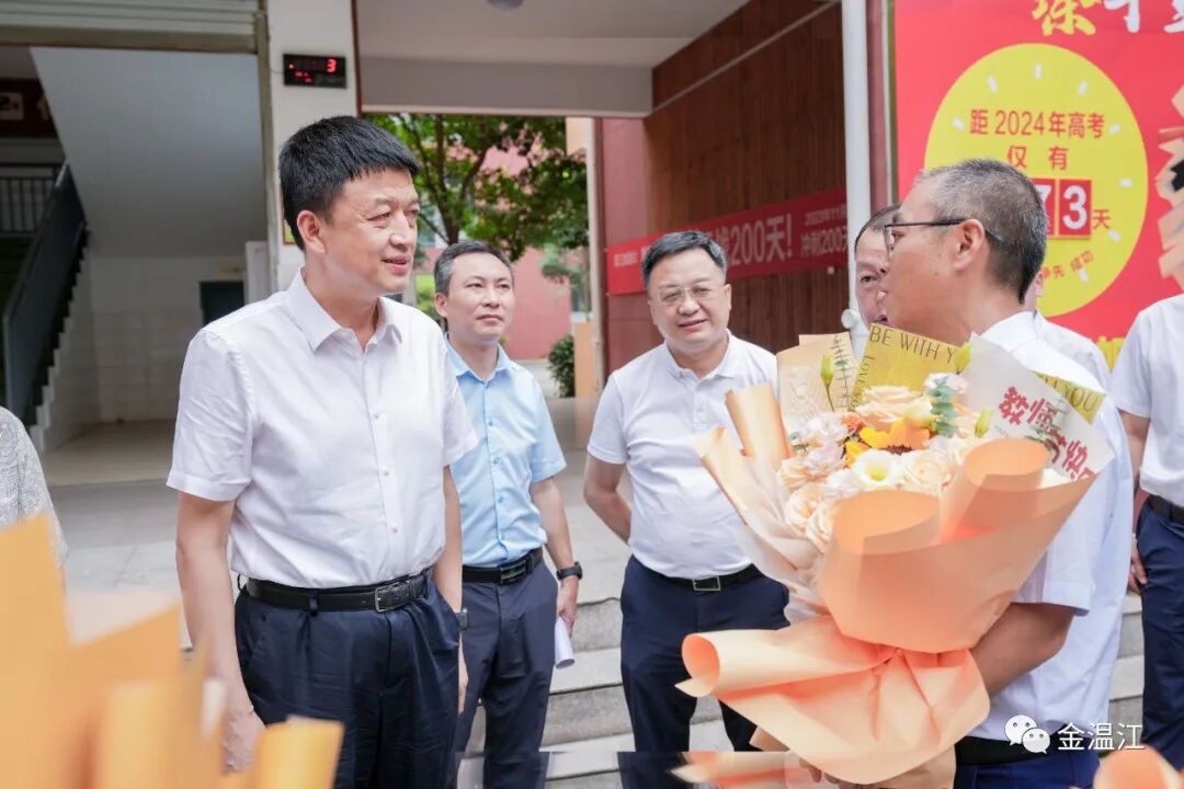 温江历来崇文重教,要深入学习贯彻习近平总书记关于教育的重要论述,全面贯彻党的教育方针,落实立德树人根本任务,以“办好人民满意的教育”为目标,树立“躬耕教坛、强国有我”的志向和抱负,坚守三尺讲台,潜心教书育人,用心用情培养更多德智体美劳全面发展的社会主义建设者和接班人。要深入实施教育领域综合改革,大力推进“家门口的好学校”建设,不断深化“体教融合”,坚持“五育并举”促进学生全面而有个性发展,让每个孩子感受知识之美、尽享成长之乐。要进一步强化安全责任意识,围绕校舍安全、食品安全、消防安全、交通安全和校园周边安全等方面,全面排查整治各类风险隐患,牢牢守住校园安全底线。要坚持教育优先发展,加强优秀教师培育力度,大力弘扬尊师重教的社会风尚,不断提高教师政治地位、社会地位、职业地位,支持和吸引更多优秀人才热心从教、精心从教、长期从教、终身从教,使教师以教为荣、社会以师为尊。
