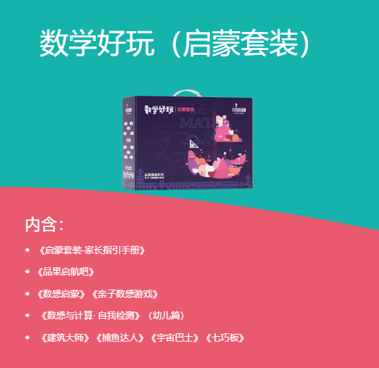 《数学好玩》系列根据不同家庭的需求,设计了3个进阶式系列套装,父母可根据自身情况为孩子选择合适的套装。