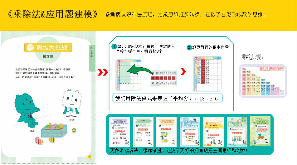 《数学好玩》将玩具融入到精心设计的游戏中,释放孩子天性的同时,引导和启迪他们的思维,培养数感空间思维和能力。并在操作式学习中,习得良好的学习品质如合作、适应、自我管理和评价、主动、交流沟通等。