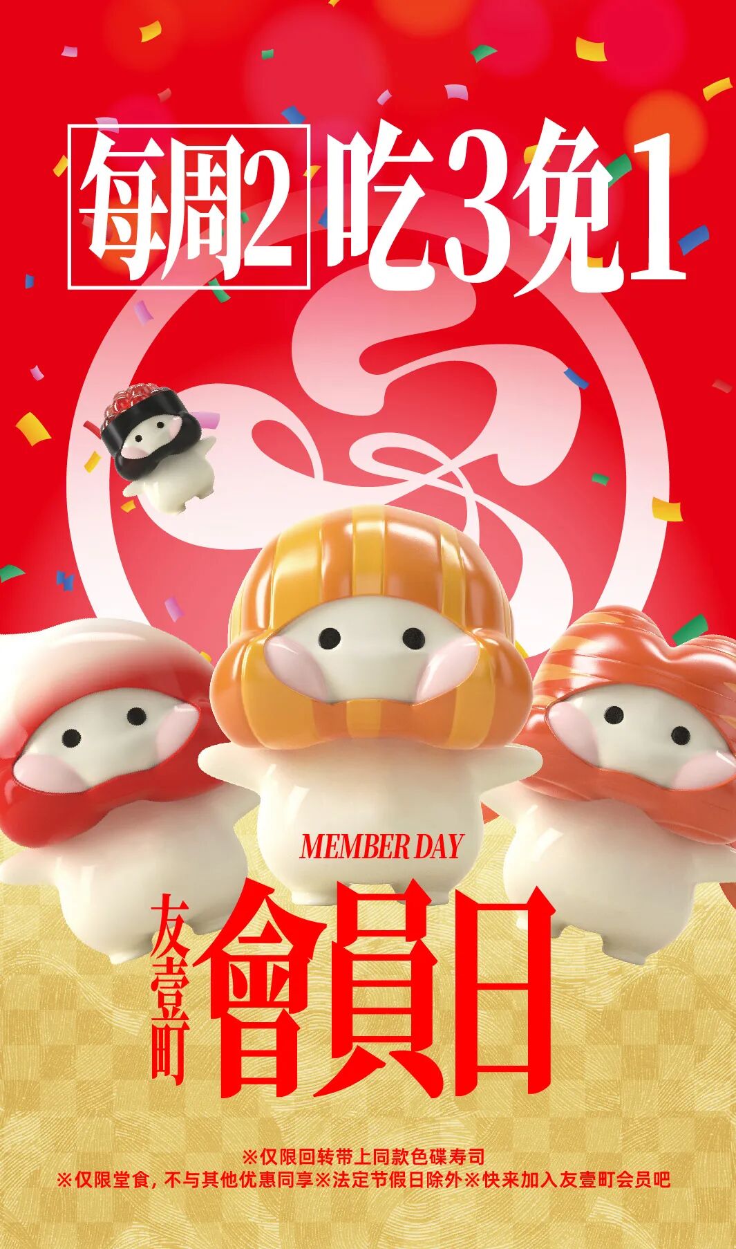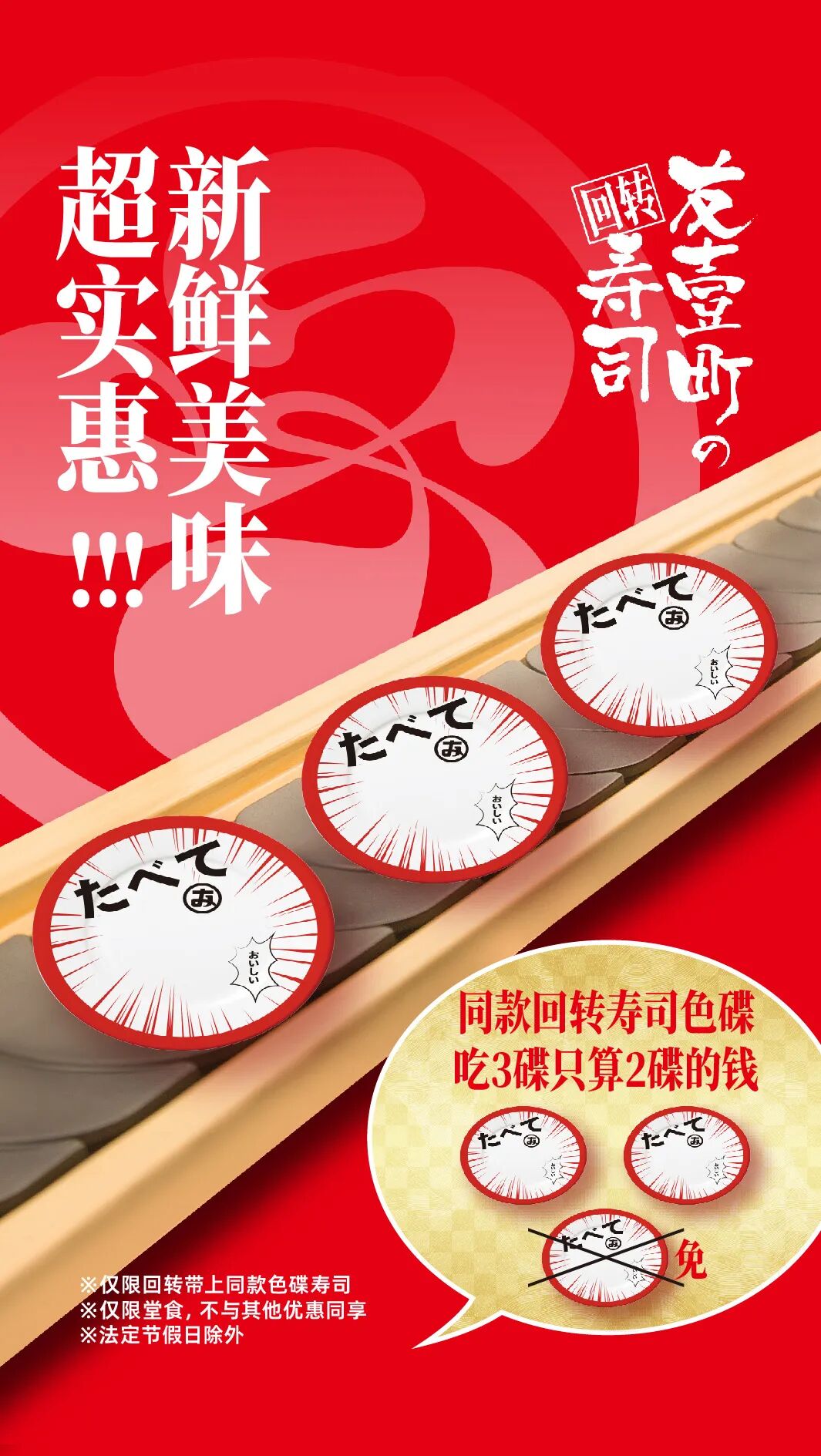 摘要:同颜色回转寿司碟\x0d\x0a吃3免1 吃的越多 免的越多\x0d\x0aPS:星期二会员日限定~