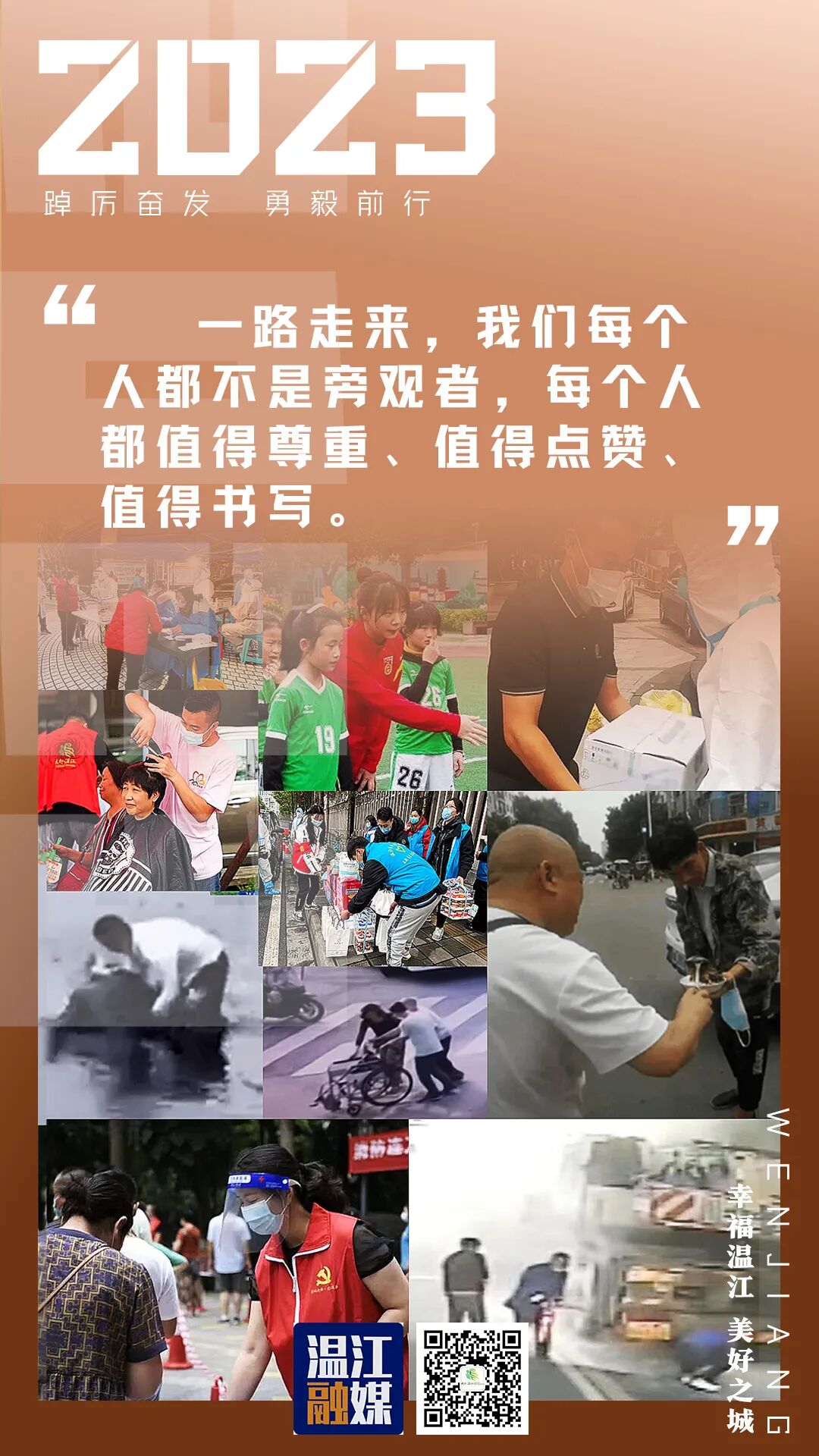 这一年,迎难而上,每一次坚韧前行,都值得感动与铭记。疫情反复、高温干旱、限电保供,走过了一个个挑战时刻,你我共同守护的“心安之区”,在每一个温江人心里筑起坚若磐石的防护墙,成为每一个温江人身上百折不挠的勇毅底色,让我们有了更大的勇气和信心迎接前行路上的每一次挑战。