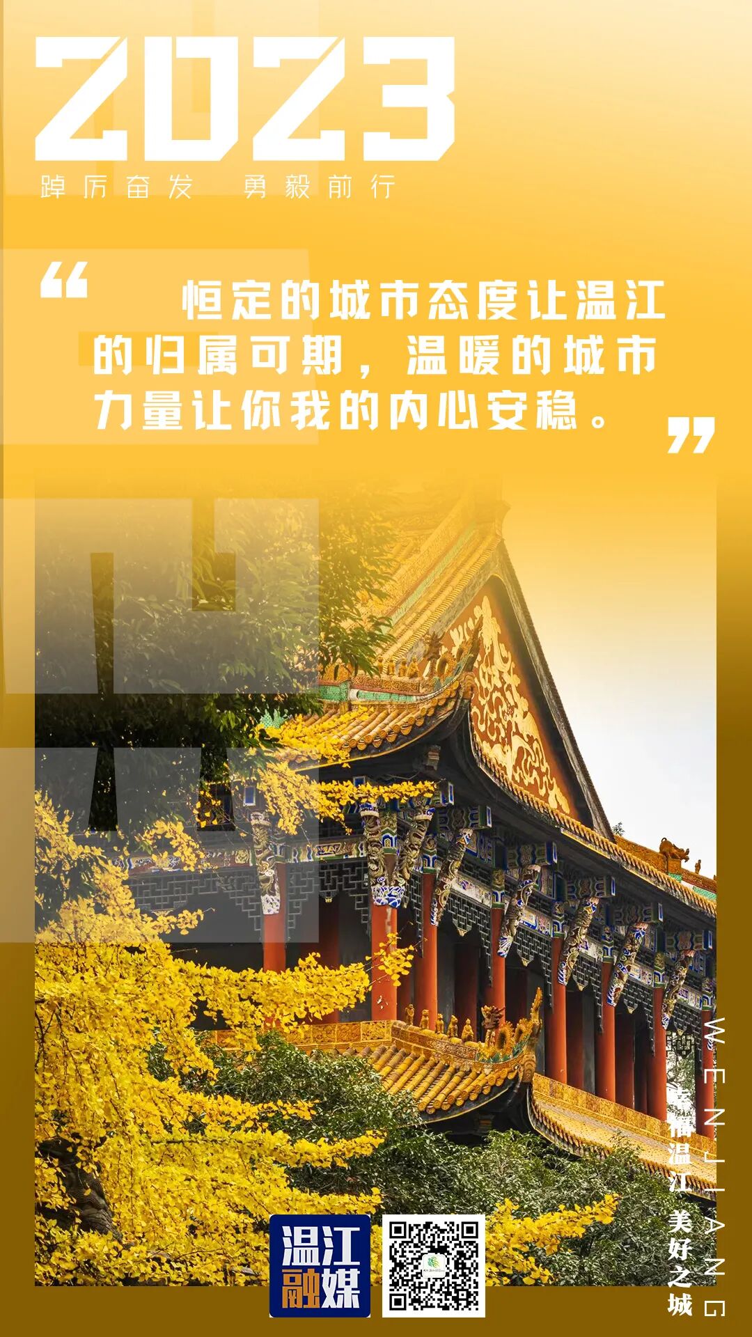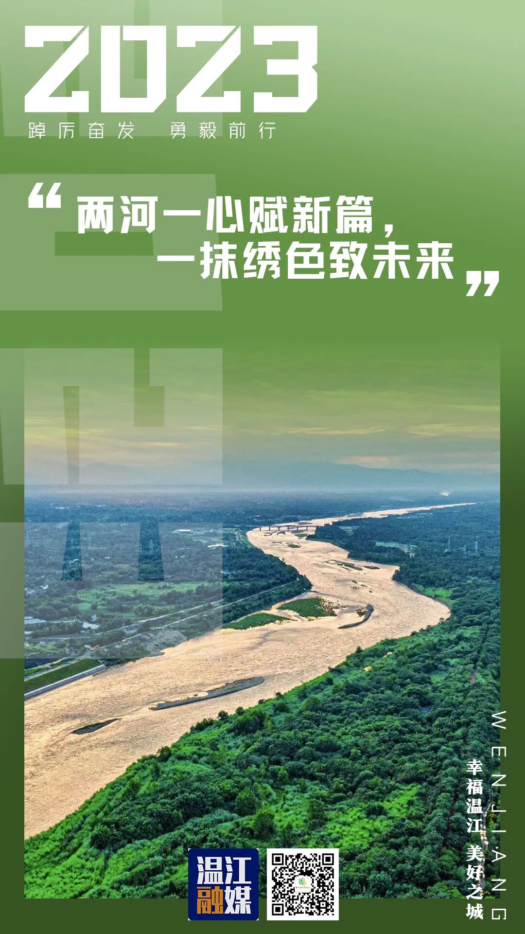 恒定的城市态度让温江的归属可期,温暖的城市力量让你我的内心安稳。当我们在新年的钟声里,走进江安河和金马河的波光霞影,走进千年文庙的时光剪影,城市的初心历久弥坚,城市的愿景如画勾勒,新与旧的交响曲,彰显着城市的特质,激发着城市的活力,推动着城市的进步。与城市共进,和时代同频,“两河一心”的营城策略,为我们接通了无限的远方,鼓舞着我们踔厉奋发、勇毅前行。