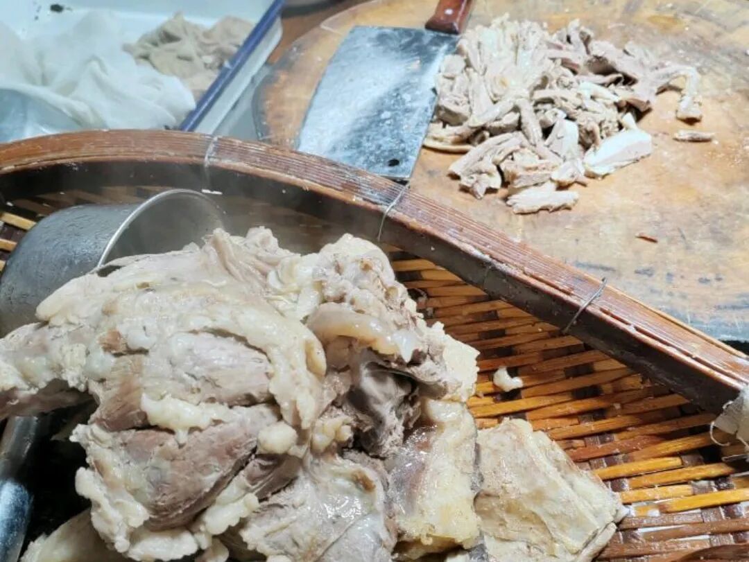 刘羊肉也开在南浦路东段,就在舒羊肉的旁边,同样是一家开了好多年的老铺子了。今年门头进行了装修升级,看起了多了几分古韵味。汤头精选诸多食材,搭配羊棒骨文火一同慢熬,熬出来的汤体微微发白,味道香浓。炖了好几个小时的羊肉也十分耙软。据老板说,为了让肉更香醇,还用草药给羊肉去膻提鲜。