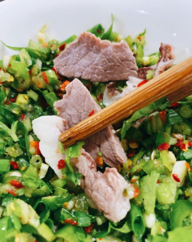 据老板介绍,他们用的羊儿都来自四川金川县和小金县的跑山羊。山羊肉由于优厚的地理气候条件,肉质会更紧实,肥瘦程度正好,煮出来的汤也十分鲜美。锅开便可以捞肉了。肥瘦相间的大块肉连着Q弹的皮,吃起来肥而不腻,劲道弹牙。用腐乳、葱香菜加上几种辣椒特制一碗蘸水,将羊肉在料碗里一裹,一口接上一口,好吃得停不下来。![]()