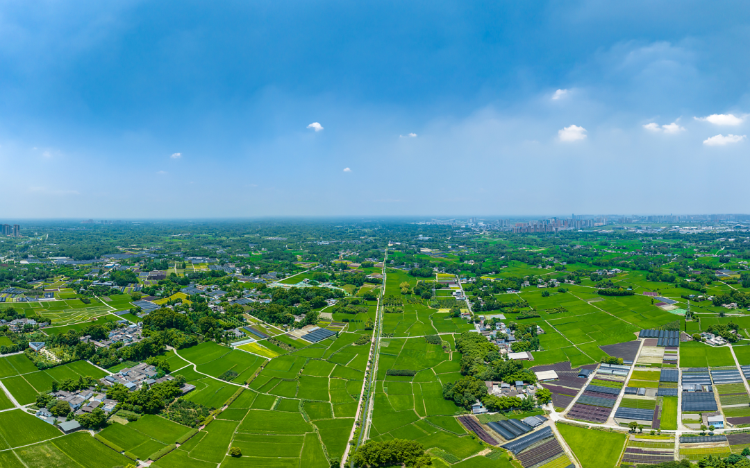 “炊烟在新建的住房上飘荡,小河在美丽的村庄旁流淌,一片冬麦,那个一片高粱,十里哟荷塘,十里果香……”当耳熟能详的歌词在耳边响起时,脑海里总能浮现出万春镇幸福村田园与山峦相望、流水与林盘相依的大美乡村画卷。