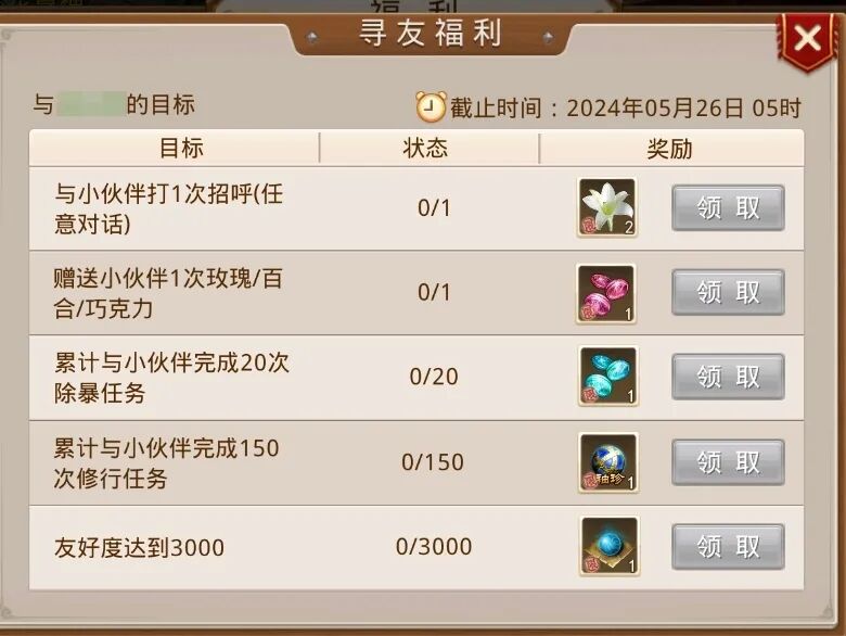 交友任务中需要与好友对话、赠送百合,但是流程较为繁琐,需要关闭对话框找到好友后发起对话或赠送,建议可以增加快速前往的选项。