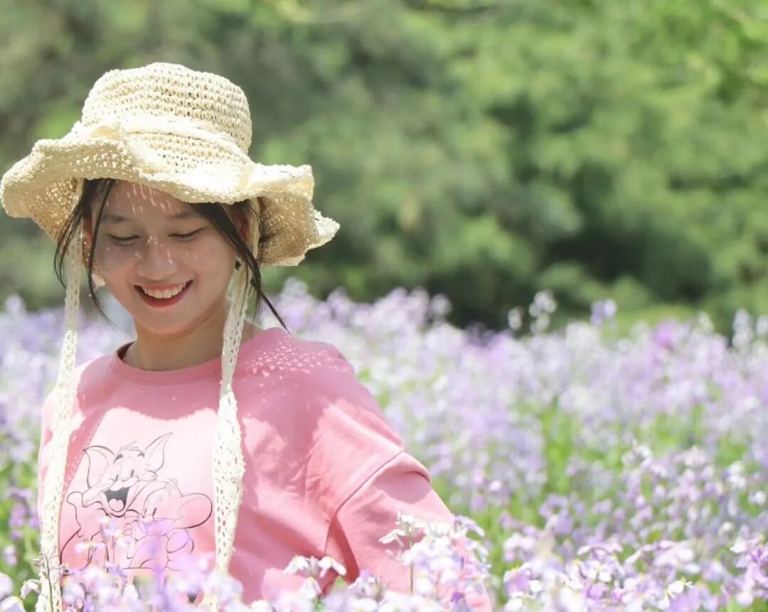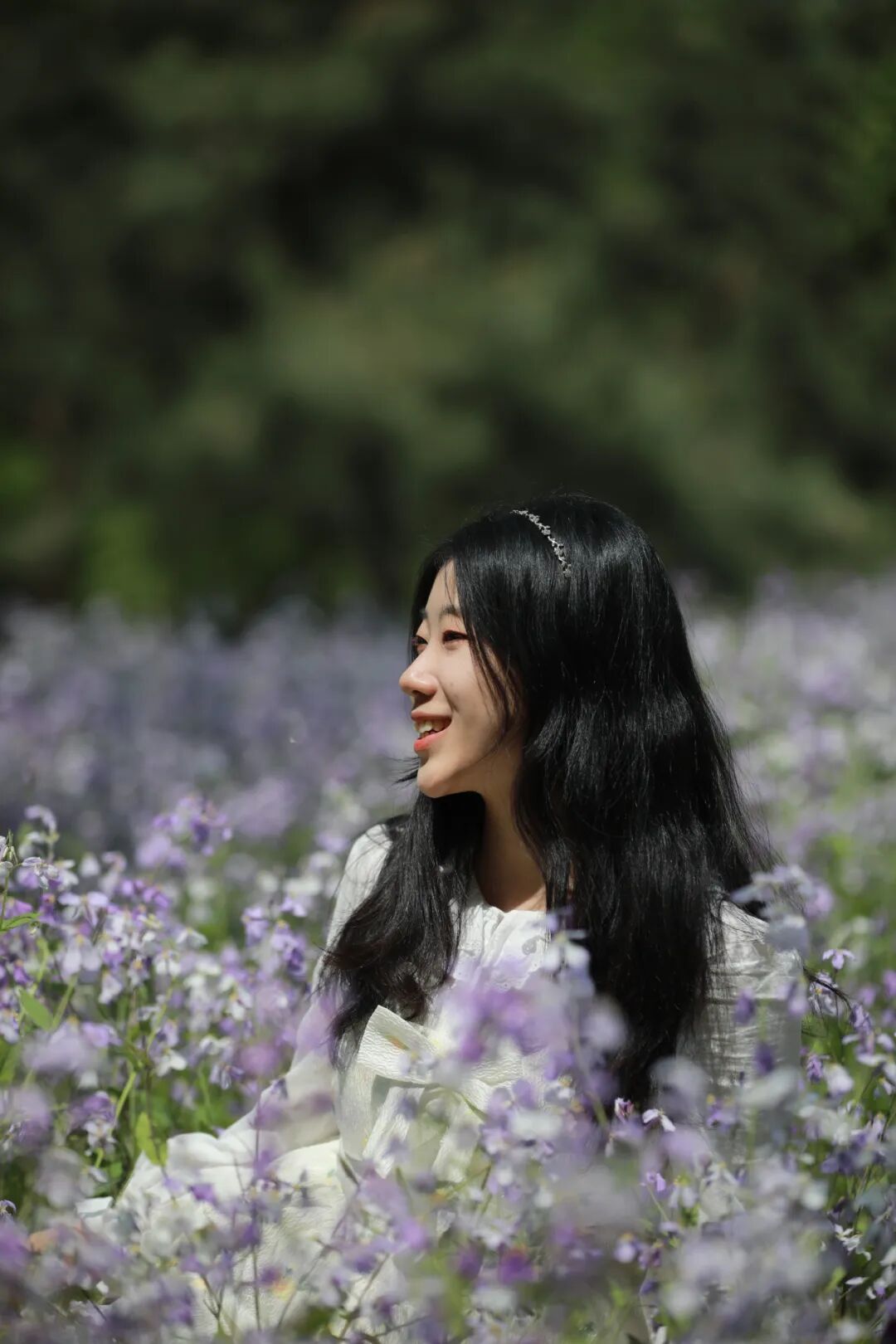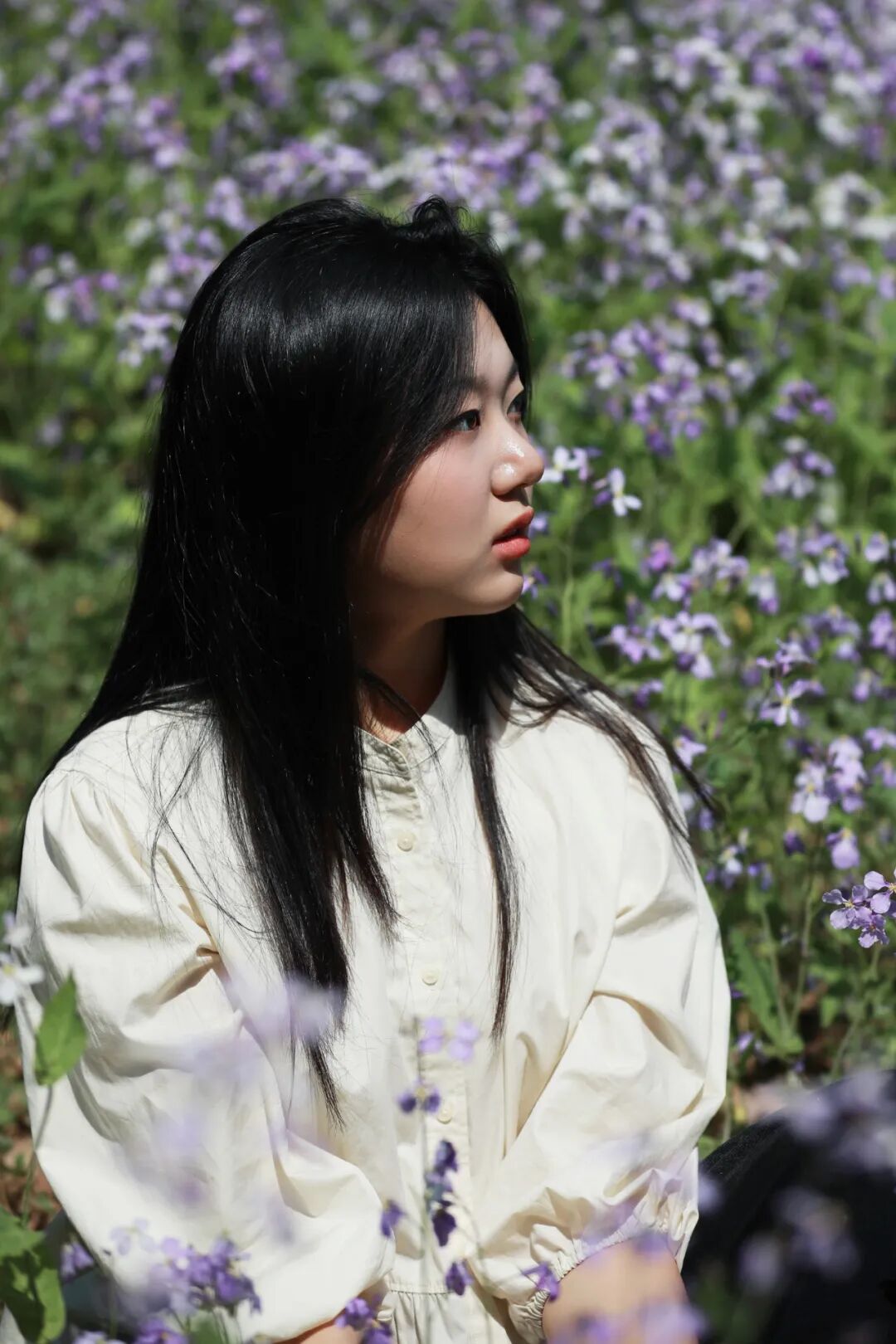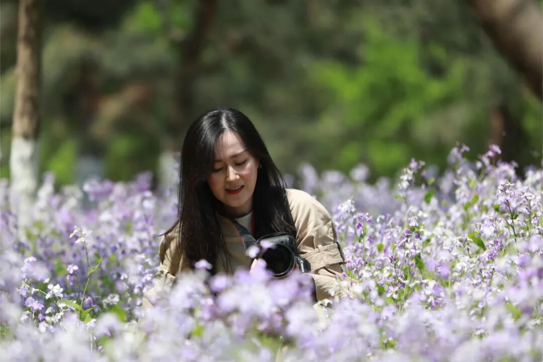 花园中的二月兰是这堂课的最后一个取景地。微风拂过,紫色的花海泛起点点波澜,周围树影斑驳,洒在每个人的面庞上。