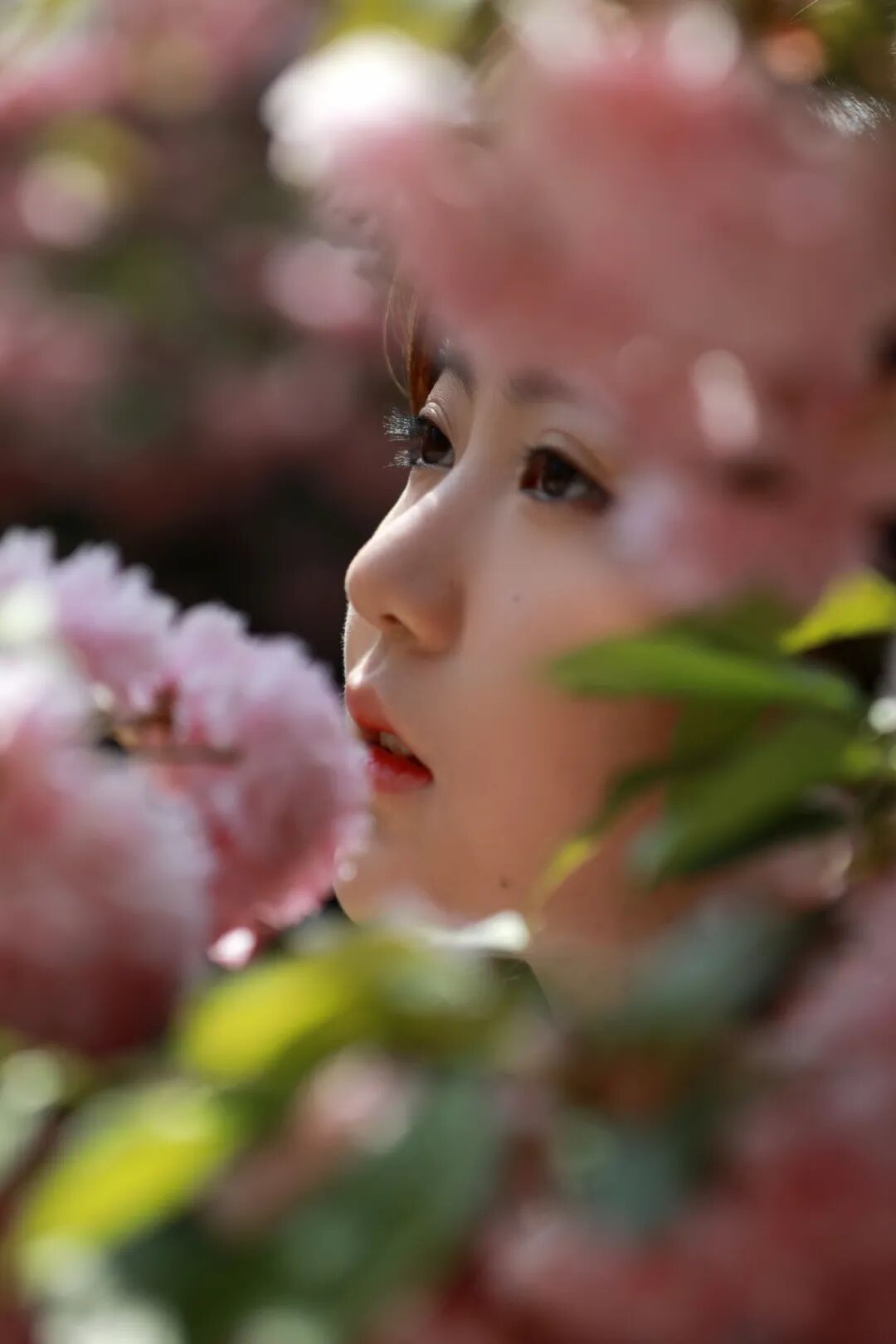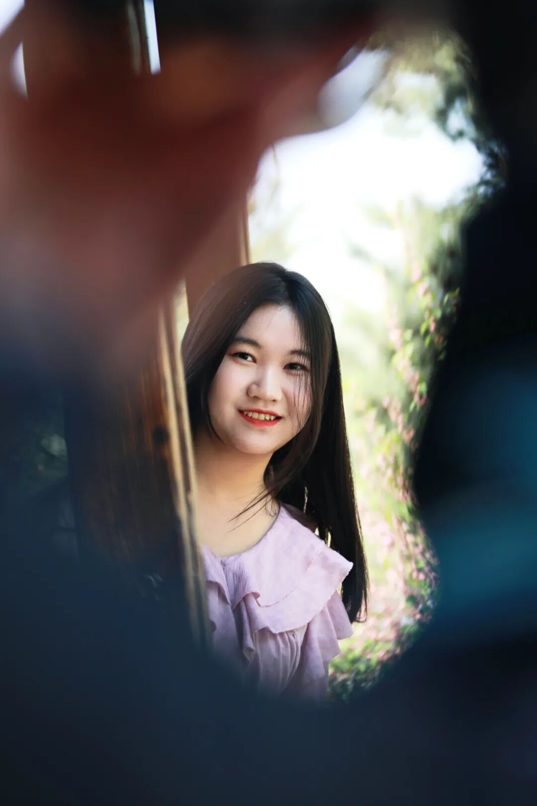 “摄影是瞬间的捕捉。要抓好人物的状态,就要找人物最灵动的那一刻。”为了让出镜同学表现出最为自然的情态,黄媛媛会和同学们“唠些家常”,话题虽然简单,却常常令同学忍俊不禁,也活跃了课堂气氛。将粉嫩的枝桠作为前景,出镜同学静坐于凉亭中,时而笑意嫣然,时而无言静思,人物仿佛入画,自成一抹风景。我们不仅能看到镜头中同学的姣好容颜,似乎也能闻到花香,听到人物的故事,甚至能触摸到整个春天。这也是黄媛媛对影像的至高追求,她希望“通过照片的视觉召唤出观众的触觉和嗅觉”,让观众获得“感官上的沉浸感”。对实践性强的课程而言,教师的讲解与学生的实操缺一不可。在黄媛媛的鼓励下,同学们也跃跃欲试,开始了“互拍”模式,将彼此的影像镌刻定格。花朵装点了校园,也滋润了师生的心田。