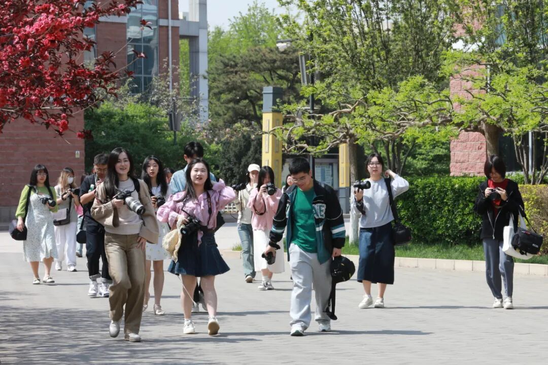 在她的指导下,同学们纷纷端起相机,弯腰、屈膝、下蹲,反复调整机位,找到最佳的拍摄姿势,只为拍到最美的花开。拍摄的思路原则基本固定,但成片的效果还是因人而异。