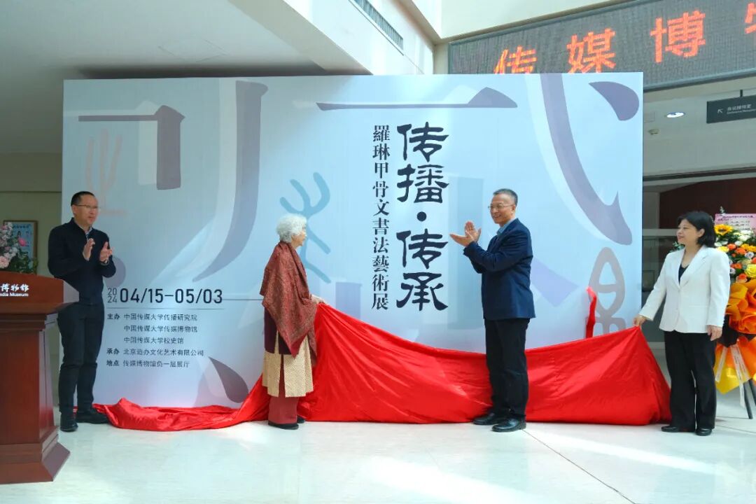 随后,副校长柴剑平、罗氏甲骨文书法直系传承人罗琳、传播研究院院长李舒、传媒博物馆馆长吴志勇共同为展览揭幕。