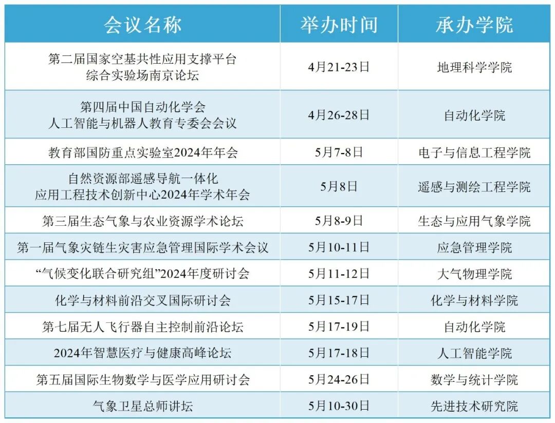 举办国际国内重要学术会议十余场,涵盖主题广泛,包括科技、气象、自然、信息、AI等领域内容,届时广大师生可以同领域内顶尖学术专家进行深入探讨研究。![]()
