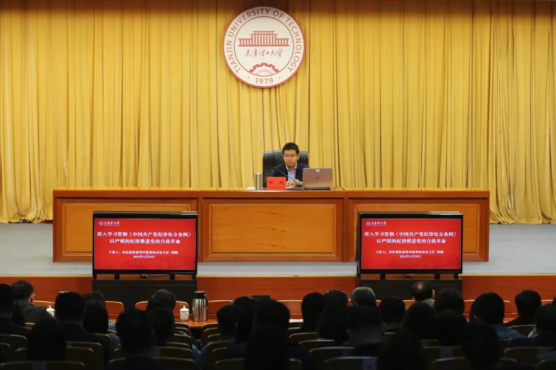 学校邀请市纪委监委第四监督检查室主任邱鹏作专题辅导报告,校院两级党委理论学习中心组成员、处级党员领导干部、基层党支部书记等300余人参加。邱鹏从修订《中国共产党纪律处分条例》的主要特点、主要内容和贯彻执行等三个方面,用生动的语言、翔实的案例对新修订的《中国共产党纪律处分条例》进行了全面系统的辅导和解读,旨在促进广大党员干部对《中国共产党纪律处分条例》的理解和认知,引导大家在个人自学与集中学习过程中,深刻理解并掌握《中国共产党纪律处分条例》内容,真正做到知敬畏、存戒惧、守底线。![]()