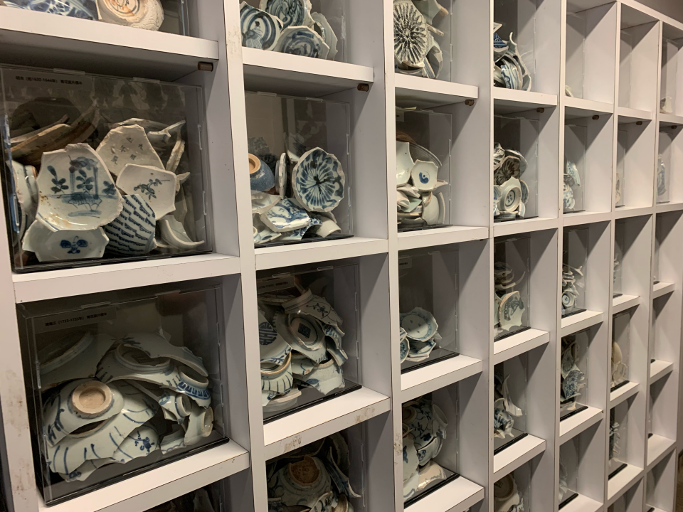 随后,顾杰老师亲自带领一行人参观了澳门城市大学创新设计学院的教学楼。首先参观了国家科技部“一带一路”实验室。其中包括各个时期、地区、造型的佛像、瓷器、日用手工业品、传统中医在海外发展的轨迹,甚至还有日本、东南亚的工艺瓷器。这些展品让学生们深刻了解到了中国手工业以澳门为窗口走向世界的历史 ,激发了学生们对中国传统工艺的热爱与探索。