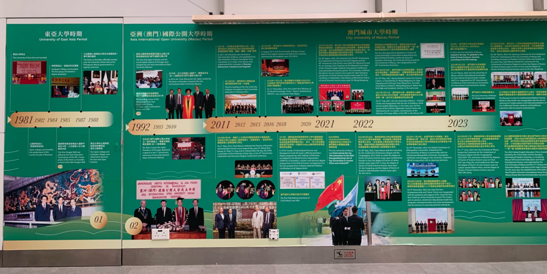 顾杰主任又带领师生一行人参观了九龙壁,这是1985年10月中华人民共和国国家教育委员会捐赠的一座标志性浮雕,也是澳门高校发展的重要象征。众人在这里留下了珍贵的合影,并深刻感受到了澳门城市大学的历史底蕴和发展成就。紧接着,顾杰主任带领师生一行人参观了澳门城市大学校史馆,介绍了澳门城市大学的校园建设和发展历史。