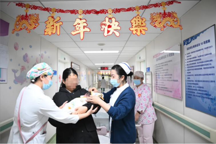 在附属北京安贞医院妇产科病房里,一位护士正在教新手妈妈给宝宝做抚触。妈妈肚子里被怀疑“心律不齐”的小家伙,刚被医生告知并无大碍。一声清脆的啼哭,宣告一个新生命的诞生;一句母子平安,让紧张的心充满喜悦。此刻,小家伙一脸享受地躺在妈妈的怀里。