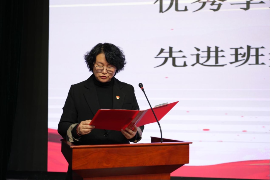 校党委学生工作部副部长宣读《关于表彰2022—2023学年度“三好学生”“优秀学生干部”“先进班集体”的决定》