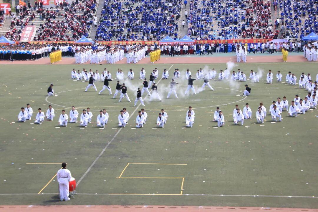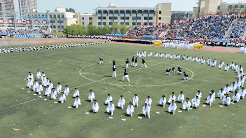 开幕式后,拉开了阳光体育展演盛大帷幕。“龙腾狮啸庆盛世”篇:辽科大学子以舞狮运动传承踔厉奋发的民族精神,用青春表达钢铁人才的爱国之情;“健康中国八段锦”篇:一千余名学生齐做健身气功,用行云流水的“八段锦”,在一呼一吸间对话历史,应和自然;“壮美山河佑中华”篇:身着跆拳道服的学生们来到场地中央,在山河绘卷中带来精彩的跆拳道表演。“美丽中国向未来”篇:1000名女大学生以绚丽多彩的翻花变换,配合12支校体育代表队的专项技术动作,寄托对大美中国的热爱。他们还摆出“1949”“2024”“旗杆”“国旗”等图案,向祖国75周年华诞献礼,将现场气氛推向高潮。