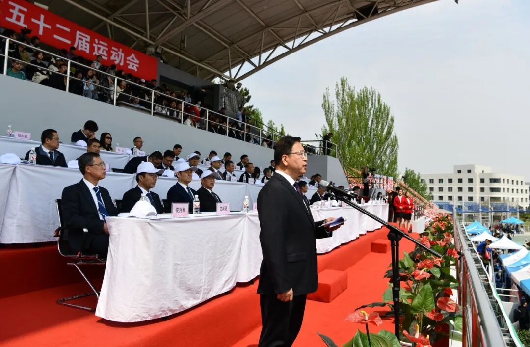 致词中,胡军代表学校党政,对第五十二届运动会的胜利召开表示热烈的祝贺,向精心组织筹备本次运动会的工作人员表示衷心的感谢,向全体运动员、教练员、裁判员、志愿者及广大师生员工致以诚挚的问候。
