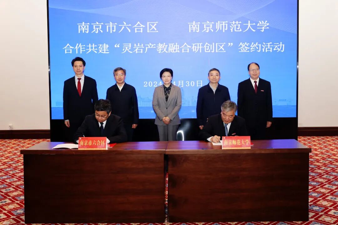 4月30日,江苏省委常委、南京市委书记韩立明一行来我校随园校区调研,并出席六合区与南师大合作共建灵岩产教融合研创区签约活动。省教育厅厅长、党组书记、省委教育工委书记江涌,南京市委常委、市委秘书长黎辉,南京市六合区委书记周勇,六合区区长董涵,我校党委书记王成斌、校长华桂宏及全体在宁校领导参加。签约活动由校党委常委、副校长岳嵩主持。韩立明围绕贯通式科技成果转化体系建设调研主题,参观学校科技成果展、南师大博物馆、虫文馆,听取王成斌、华桂宏及相关工作负责人对学校科研创新、成果转化、文化建设等情况汇报,详细了解学校在推动校地融合发展、组织核心技术攻关、促进科技成果转化等方面具体举措。韩立明指出,南京师范大学是国家“双一流”建设高校,底蕴深厚,名家辈出。近年来学校强化“弘文、强理、建新工”发展格局,聚焦服务国家和地方需求,持续深化校企、校地合作,在人才培养、科学研究、成果转化等方面不断取得新成果,去年引培国家级人才、入选国家海外博士后人数创历史新高。当前,南京正在深入学习贯彻习近平总书记对江苏工作重要讲话重要指示精神,统筹推进科技创新与产业创新,加快建设具有全球影响力的产业科技创新中心主承载区。我们立足南京科教资源禀赋,把构建贯通式科技成果转化体系作为加快发展新质生产力的关键抓手,大力促进创新链产业链资金链人才链深度融合,打通“科技-产业-金融”循环通道。高校是新质生产力的重要策源地,希望南师大充分发挥科教人才资源优势,与地方携手打造发展新质生产力的新引擎。南京将加强对接承接,为高校科技成果就地转化和产业化提供良好环境。韩立明强调,灵岩产教融合研创区是校地合作的最新成果,既优化了学校发展布局,也为南京拓展了创新空间。希望学校与六合区深化“大学+产业+园区”融合发展,共同建设原始创新高地,合力提升成果转化效能,加快打造产业科技引擎,持续完善人才服务生态,不断塑造发展新动能新优势。签约活动现场,王成斌代表学校向长期以来关心和支持南师大事业发展的南京市、省教育厅等各级领导和各界朋友表示衷心感谢。他简要介绍了近年来学校事业发展情况,他指出,南师大建校120多年来,与南京共兴共荣、携手前行,书写出一段“名城”与“名校”融合发展的生动历史篇章。他表示,学校将坚持教育科技人才融合发展,深入贯彻科教兴国、人才强国和创新驱动发展战略,充分发挥教育、科技、人才优势,深入推进南师与六合跨江融合发展,持续深化科教融合、产教融合,努力培育一流人才,产出一流成果,共同打造教育科技人才融合发展新高地,为南京成为培育和发展新质生产力的重要阵地作出更大贡献,为江苏担负起“走在前、做示范”的重大使命提供强有力的人才、智力和创新支撑。周勇表示,长期以来,六合与南师大在多个领域建立了良好深入的合作关系,灵岩产教融合研创区的正式签约是六合区与南师大“双向奔赴”的结果。六合区委区政府将强化工作专班,在项目立项、审批、建设等各环节为南师大提供全流程服务,全力以赴保障项目顺利推进。他表示,期待在双方的精诚合作、共同努力下,推动南师灵岩融创区早见成效,加快建设成为因地制宜发展新质生产力的校地合作典范;也期待以此次合作为起点,双方在推动学科建设与产业发展方面努力实现更深层次、更高水平、更宽领域的互惠共赢。华桂宏、董涵代表校地双方签署共建协议,韩立明、江涌、黎辉、王成斌、周勇见证签约。