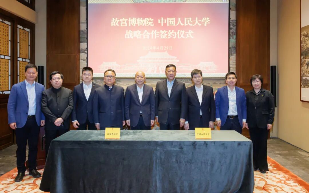 文化和旅游部党组成员、故宫博物院院长王旭东,党委书记、副院长都海江,常务副院长娄玮;中国人民大学党委书记张东刚、校长林尚立、党委副书记郑水泉出席。故宫博物院副院长王跃工,中国人民大学副校长、美育工作领导小组组长王易分别代表双方签署战略合作协议。故宫博物院党委副书记、副院长罗先良主持。