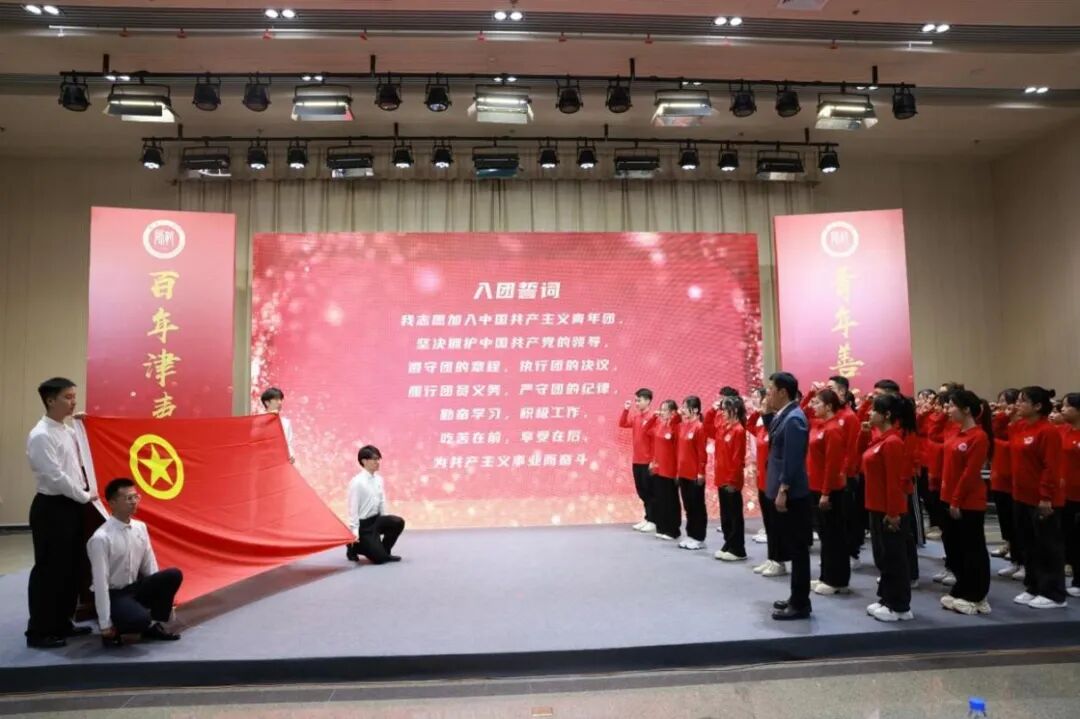 在入团仪式上,与会领导为33名新团员颁发团徽徽章和团员证,校团委书记于坤带领新团员进行入团宣誓。外国语学院2211团支部徐姿曼、美术与设计学院2019团支部任世蕊分别作为新团员代表和优秀团员代表发言。仪式在激昂的《中国共产主义青年团团歌》中落下帷幕。