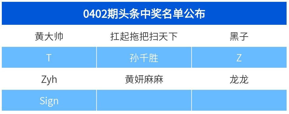 3.中奖名单:详见下期推文。