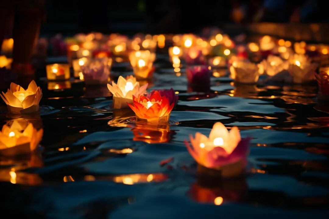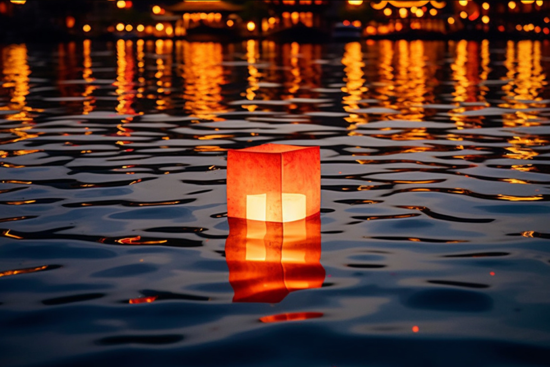 传说这天,地宫之门打开,放出鬼魂,让他们得以回家团圆。但是人到中年,历经人生的悲欢离合,生死哀伤,慢慢懂得,那些令人害怕的鬼,都是别人朝思暮想的人。理解了中元节的意义,也就慢慢读懂了它背后的庄严敬畏,温情慈悲。对待死去的人,要像对待活人一样,恭敬妥帖,衣食住行,样样周到。比如清明节扫墓是为先人打扫房间,寒衣节烧寒衣是天气转凉,为先人寄去衣物。而中元节则是祭祀先祖,是让先祖尝到刚刚收获的粮食。人们设好香案,用新米来供奉祖先,一方面是报告今年的收成,感谢祖先的荫庇;另一方面,则是祭祀神灵,免灾接福。“中元前一日,即买练叶,享祀时铺衬桌面,又买麻谷巢儿,亦是系在桌子脚上,乃告先祖秋成之意。”中元节这一天,地宫打开地狱之门,鬼魂回家过节,享受家人供奉,也是重温难得的团圆。作家刘筱静曾说,她年轻的时候,对这个有些晦气的“鬼节”从来是敬而远之。但是中年以后,渐渐开始听到亲人、朋友离世的消息,直到父亲去世,她终于明白这个节日的含义。逝者已矣,阴阳两隔,鬼节,反而成为为数不多的团圆。行祭礼并不是因为鬼神真正存在,但是它让我们的心灵有所皈依,让我们的感情得以寄托。为逝去的亲人焚烧纸钱,希望他们可以在另一个世界能够免受贫乏之苦。焚烧纸钱,需要写“包袱单子”,在纸钱“包袱”上,写上家族三代乃至七代祖先的名字。这个单子需要家里的孩子来写,希望他们能记住自己的祖先,记住自己的来处。谨慎地对待父母的去世,追念久远的祖先,民风自然朴实敦厚。一个人知道自己的祖先,知道自己的来处,才能传承家风,不堕家声。焚香祭祀,供奉新米,在告慰先人的仪式上,我们的内心平静下来,灵魂才真正有了归宿。释迦牟尼座下大弟子目连的母亲,生前吝啬贪婪,虽然家中甚富,但是却从不修善。目连知道后,心中不忍,于是偷偷给母亲送饭吃。不料饭刚送到母亲嘴边,便化为焦炭。佛祖告诉目连,在盂兰节当日,借助十万僧众,超度其母亡魂,让她得以摆脱饿鬼道。丰子恺就曾说:自己小时候,每年中元节,地方都要集资做佛事,来超度亡魂。僧人一边念诵佛经,一边撒米布施,仿佛真的有许多恶鬼抢食。从帝王将相,到乞丐囚徒,都能在这场佛事里分一杯羹,以示佛家普度众生之意。老两口怕女儿迷路,于是做了很多河灯放在淮河里,希望让女儿找到回家的路。他们这才知道,河灯帮助超度了亡灵,女儿才得以顺利归来。一个懂得救难的人,一个善良的人,优于一切伟大的人。不是所有孤魂都有家可归,不是所有亡灵都能享受祭祀。但是若能得到一盏河灯,他们就能脱离苦海,早入轮回。放灯表示活着的人们,对那已死的冤魂怨鬼还没有忘记,愿意给他们照亮前行的道路,这是人的一份慈悲心肠。当放下河灯的那一瞬,某种意义上,也唤醒了人们内心的善良。小女孩告诉他,过了前面开满鲜花的土丘(坟墓)就到了。可是年纪渐长,父母渐渐老去,那堵隔在死神之间的墙已经开始倒塌。清明节扫墓之后,人们要“借墓游春”,在山水之间,游玩踏青,尽享欢愉。中元节也一样,人们借着月色,结伴游湖、放河灯、互送玩偶,尽兴方归。小儿竞把青荷叶,万点银花散火城。