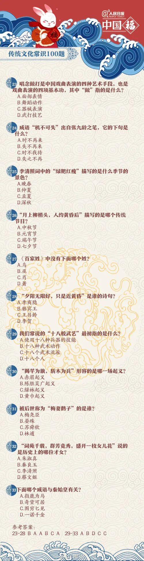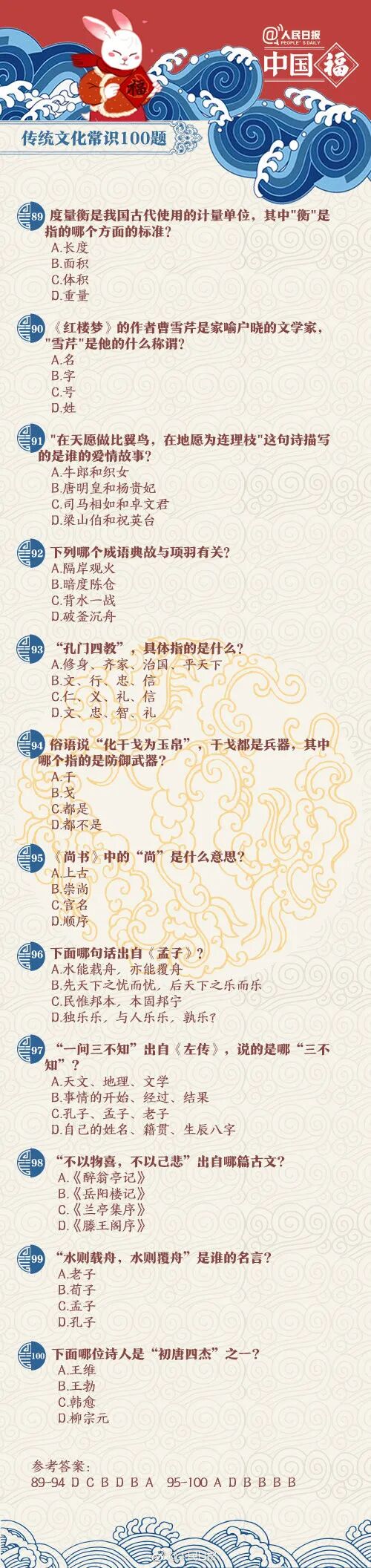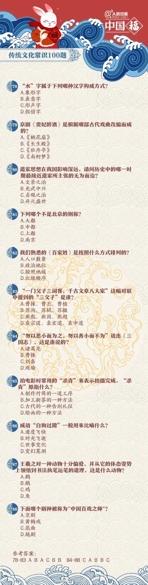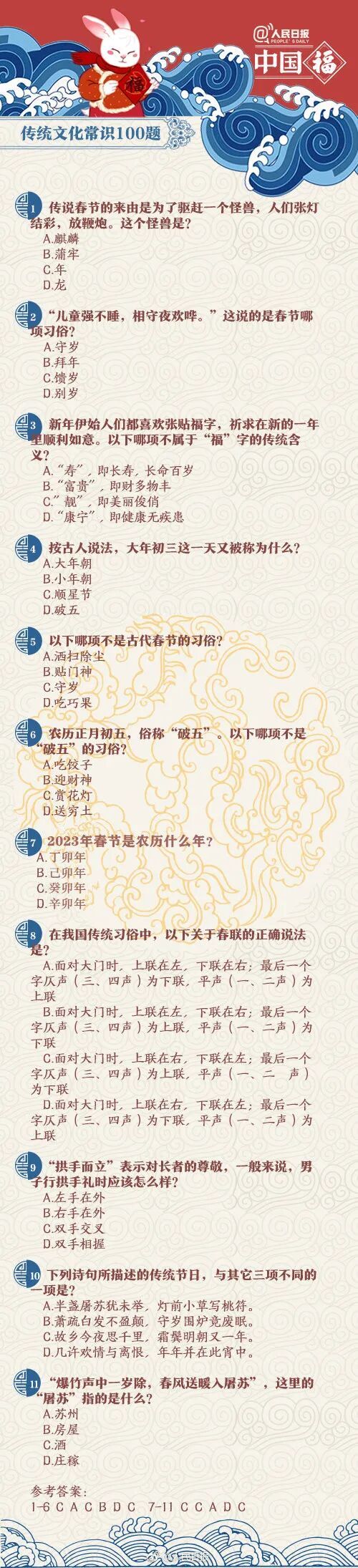 春节:人民日报发布传统文化常识100题,你能答对几个?