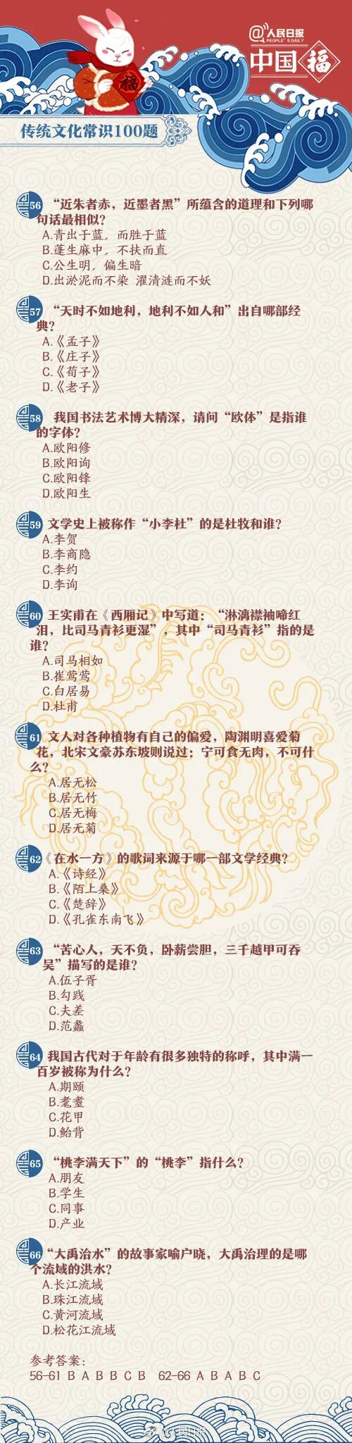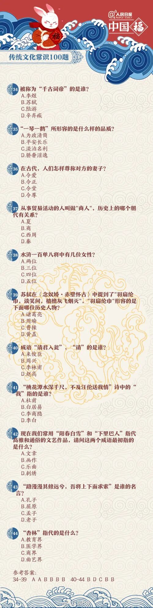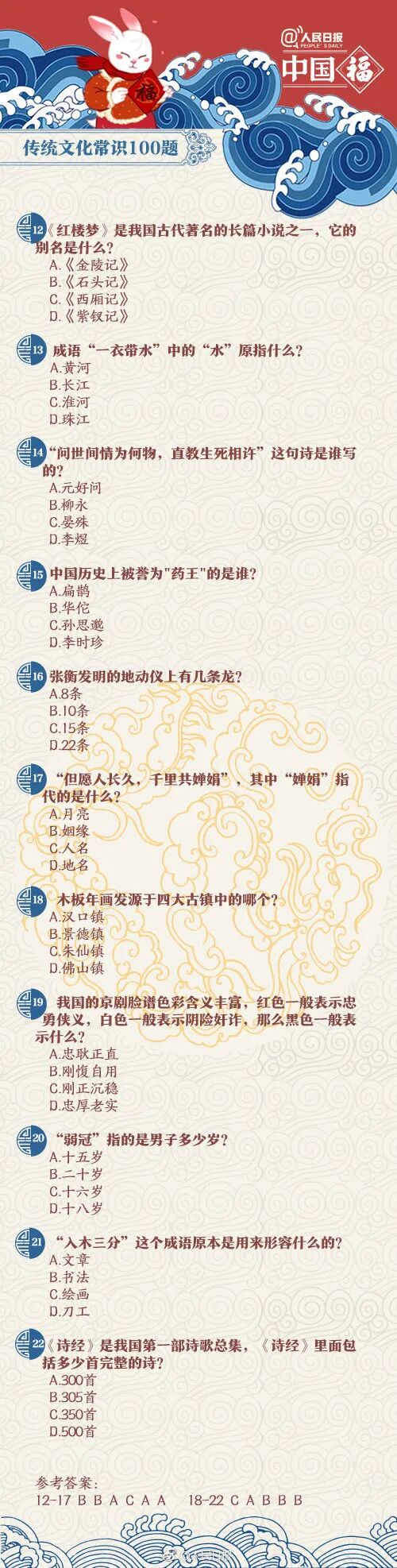 春节是中华民族最隆重的传统节日,对每一个中华儿女都意义重大。今天洞见君就和大家分享人民日报发布的传统文化常识100题,看你能答对几个。