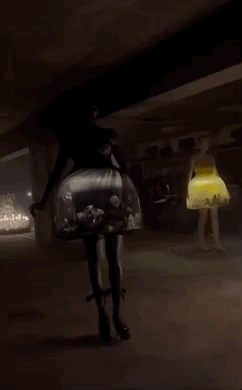 这晶莹剔透的礼服像是被两只鸟儿衔起的水流制作而成,让人想起《灰姑娘》里 Cinderella 也是小鸟帮她穿衣服,又像是施了魔法冰封住的冰晶,充满了童话色彩和易碎感。
