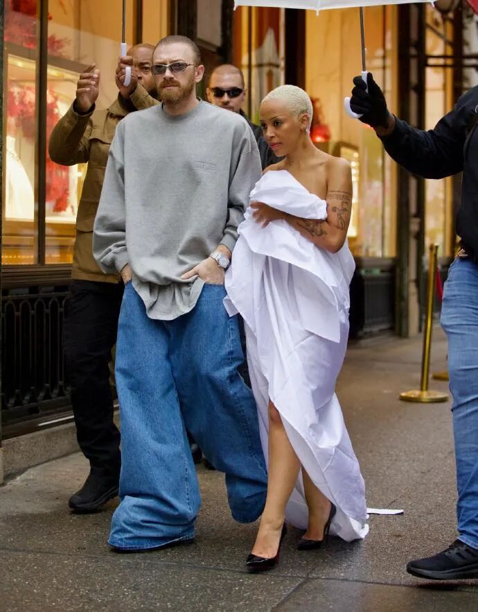 Doja Cat选择了一条 VETEMENTS 白色长裙加上“妆都哭花了”妆容,大玩湿身诱惑。