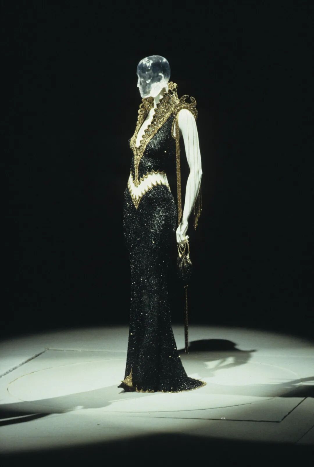 更著名的演绎是在 1999 年的奥斯卡红毯上,由大魔王 Cate Blanchett 上身演绎过的类似款,随后这套造型便被大都会博物馆收藏。
