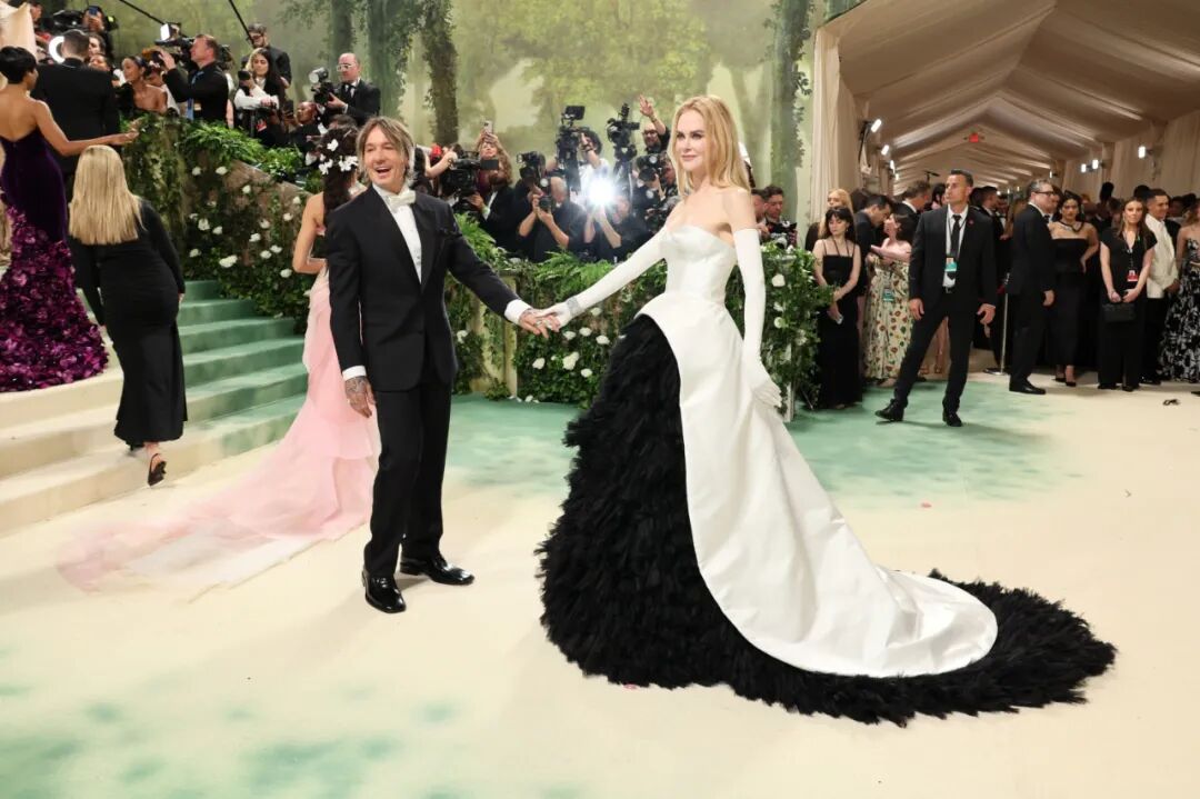 Nicole Kidman这次依然跟丈夫一起亮相,造型也主打一个唤醒曾经的时尚。