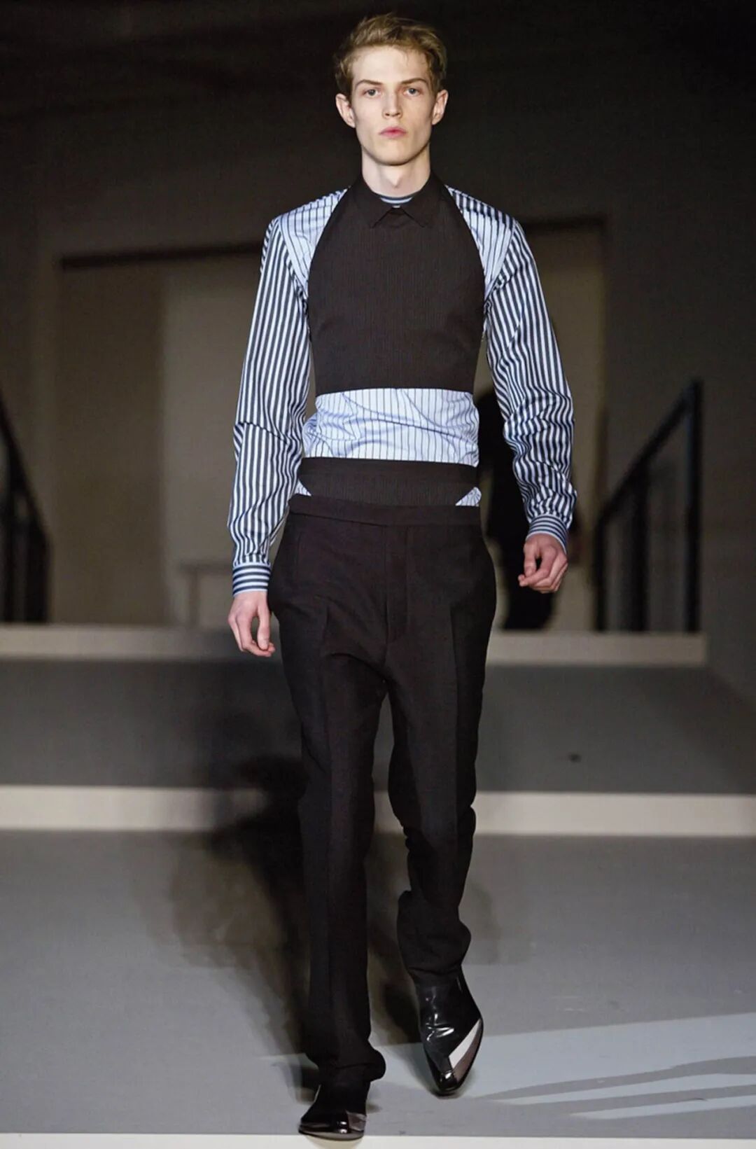 这套造型同样也来自 Maison Margiela 的特别定制,其灵感是海盗爷为 DIOR 打造的 1997 秋冬高定系列。