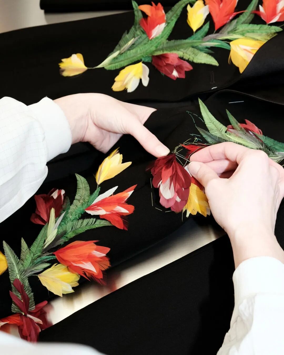 Alessandro Michele时期 Gucci 的花卉刺绣缎面礼服、以及 Marni 的花朵拼贴裙、Philip Tracy设计的玫瑰礼帽等,这些以花为元素或是形式的经典设计,依次亮相。