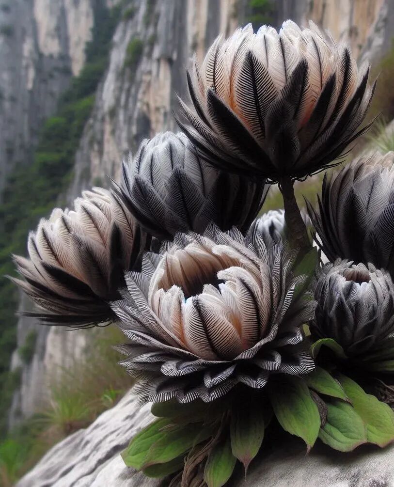 这种植物生长于严酷的环境中,其花瓣比较细小,看上去有点像羽毛。