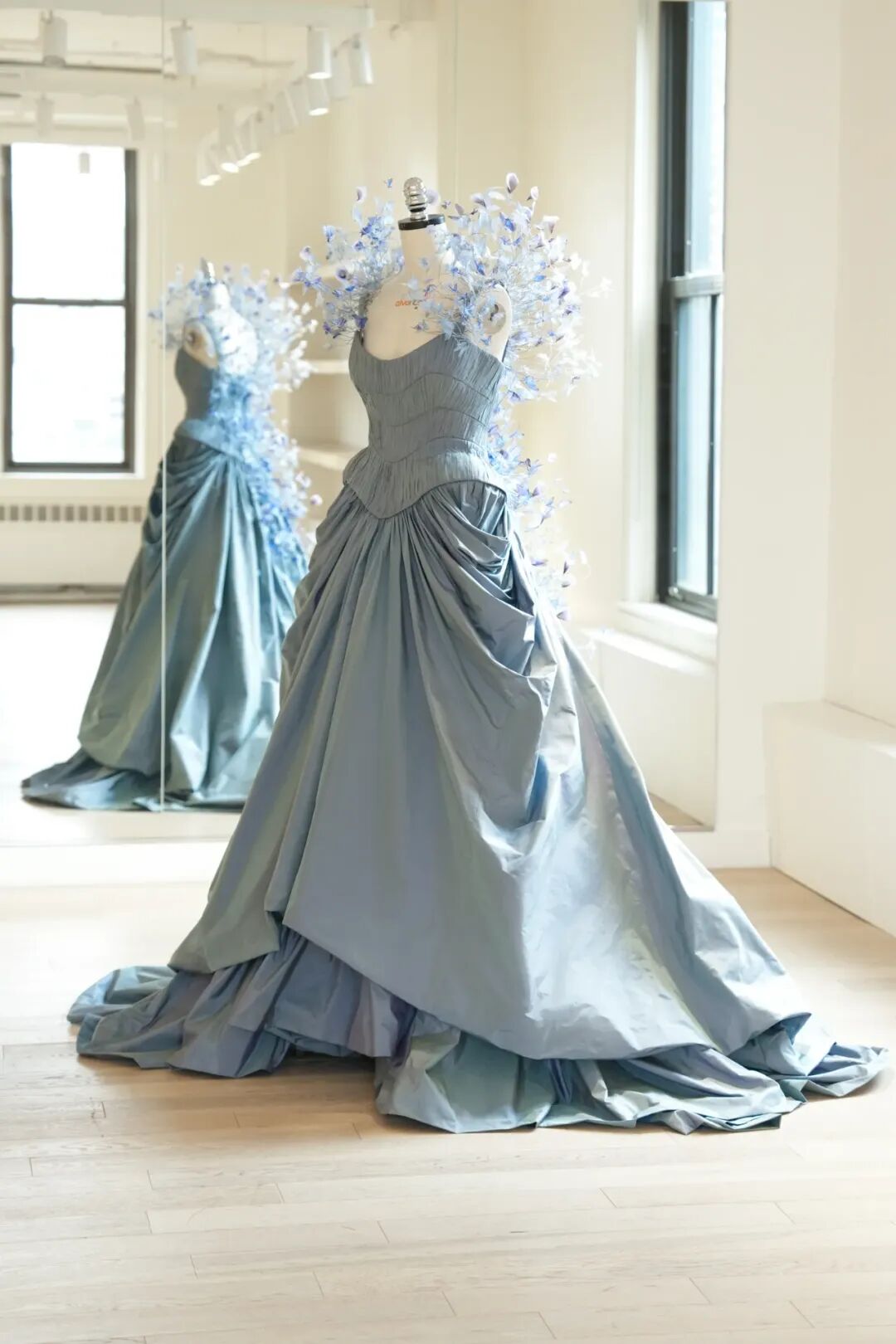 这套礼服来自于 LOEWE 的特别定制,廓形是 LOEWE 2024 秋冬系列,而设计灵感则是 1940 年代 Charles James 打造的晚装斗篷。