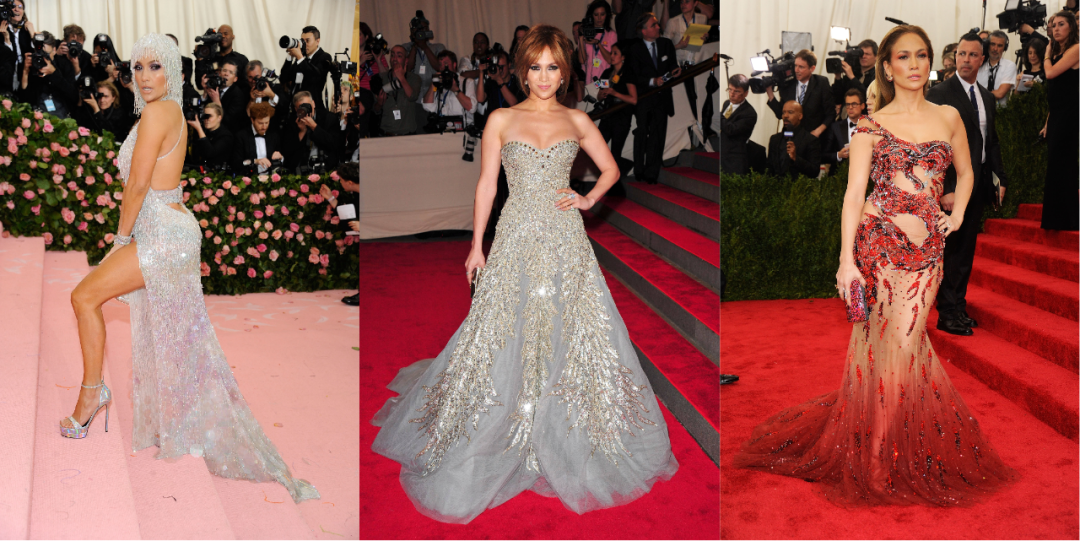 另外一位联合主席 Jennifer Lopez 也是 Met Gala 的熟脸了,从她 1999 年首次亮相后的这 20 多年间,她总共走了 14 次红毯,而且合作的都是Donatella Versace、Ralph Lauren、Pierpaolo Piccioli、Zuhair Murad这些鼎鼎大名的设计师。